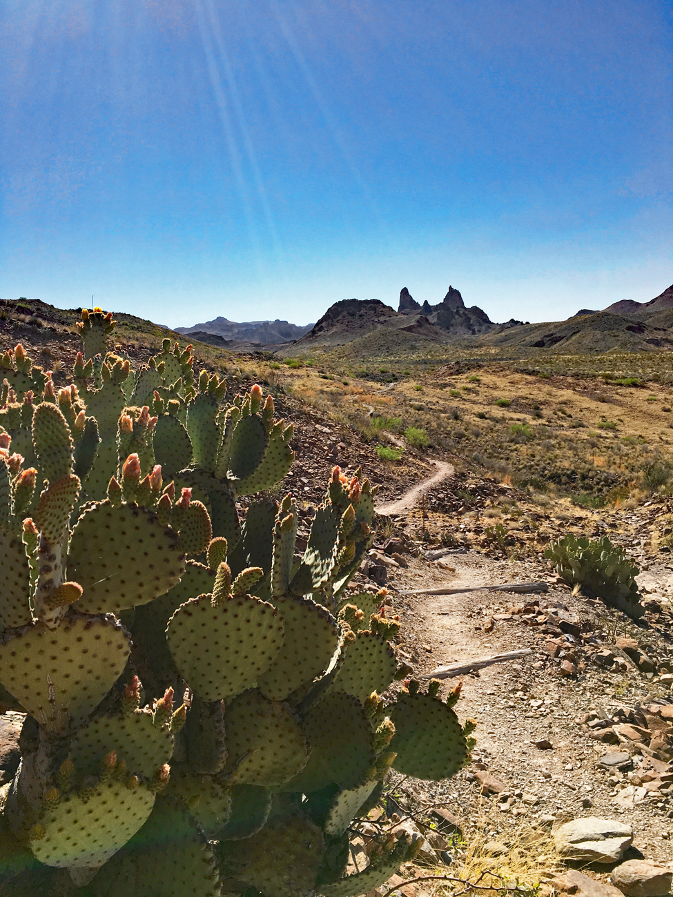 On one of our first days in the park, we hiked to Mule Ears Spring, starting from Mule Ears View Point along Ross Maxwell Scenic Drive. For us, the journey was more impressive than the destination. The spring itself is small, though any oasis in the desert offers the potential for unexpected life, such as frogs and wetland wildflowers. We enjoyed a bit of both upon reaching the spring.