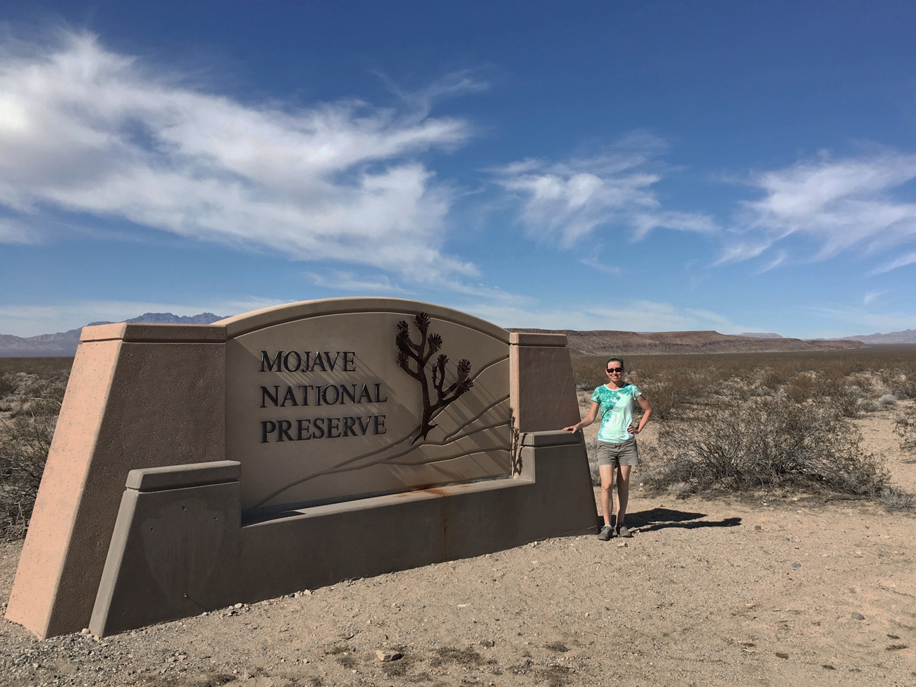After Amboy Crater we stayed at Hole-in-the-Wall Campground in the Mojave National Preserve for two nights. There, we could get fresh water and dump our wastewater tanks before moving on to another boondocking site. The campsite was $6 per night with our Federal lands annual pass. We had a great campsite near the end of the campground where the Barber Peak Loop Trail starts. There are fabulous views of desert mountains and rock formations from this campground. It is peaceful and very remote – no cell phone signal or electricity. There is a visitor center and nature trail with plants labeled.