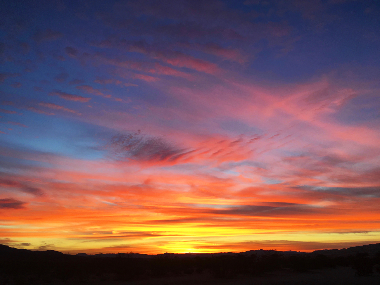 We are sitting outside our trailer in the overflow parking lot for the Amboy Crater National Natural Landmark. I am stretching on the ground, on my yoga mat, and Michael is in his chair reading The Monkey Wrench Gang by Edward Abbey. It is almost silent except for a grasshopper here and there and the occasional car or train in the distance. We are trying boondocking for the very first time. We sanitized our fresh water tank back in Riverside and hitched up early yesterday to make it up and over the Cajon Pass before the 30-35 mph gusts began. We chose to start with this overflow parking lot because it’s easy.