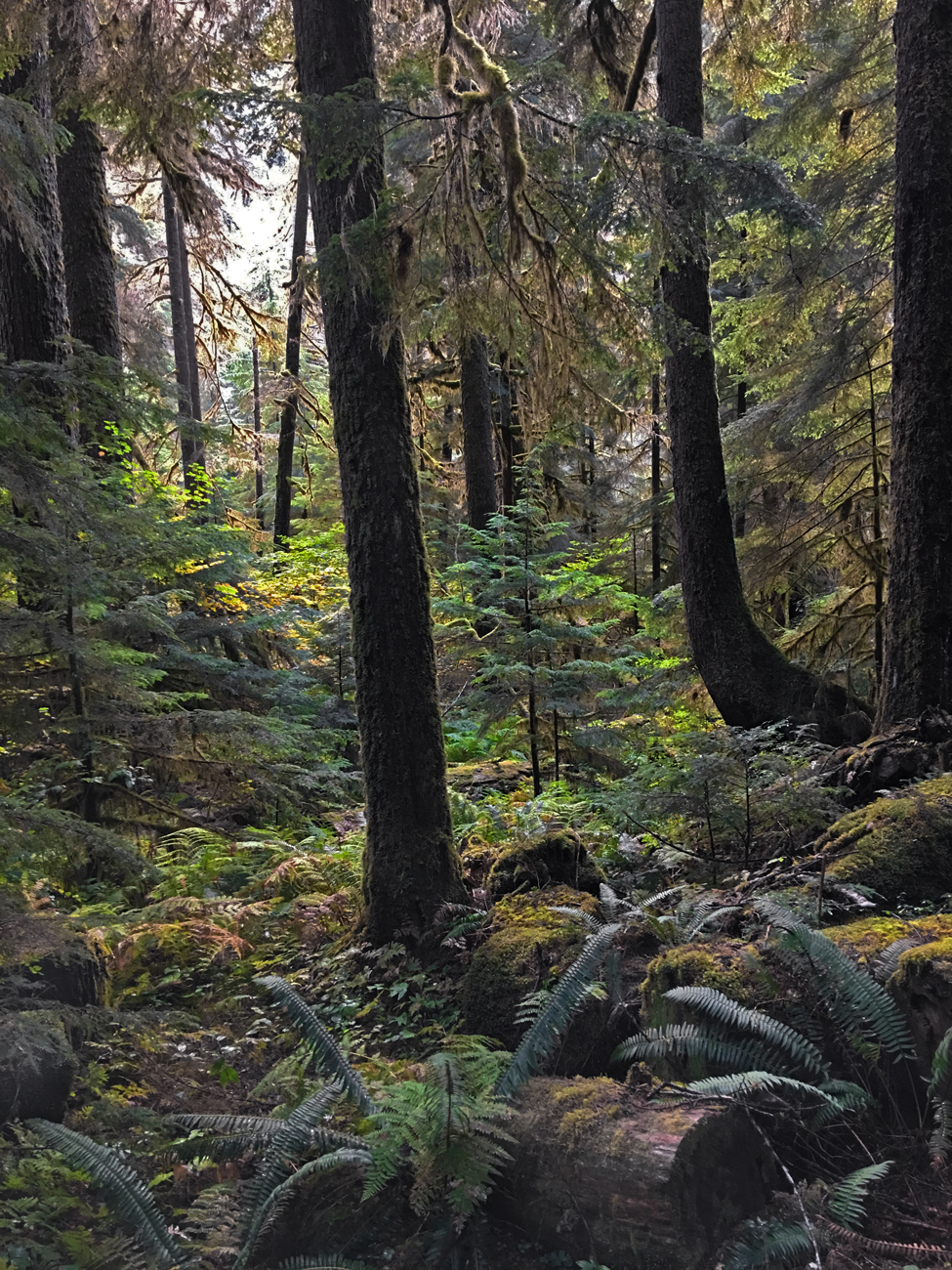 For our last day on the north side of Olympic National Park we chose to challenge ourselves with another uphill hike, this time to Lake Angeles. This hike begins just at the north edge of the park boundary off of Hurricane Ridge Road. It starts off winding through a moist forest full of foliage and crossing the creek on bridges cut from downed trees. The trail then ascends from the moist valley to the dry side of the mountain, and the monotonous switchbacks begin. This part of the forest is composed of younger, densely packed conifers, and the forest floor is completely covered in downed trees, branches, and needles. The detritus is piled so high that there is no understory growth whatsoever. It is dark and cold, and the switchbacks seem to go on forever. We were hungry for a snack about halfway up, and we kept going, thinking that we might find a patch of sun to sit in around the next bend. We eventually gave up and parked ourselves on the steep slope next to the trail for a quick snack before our fingers froze.