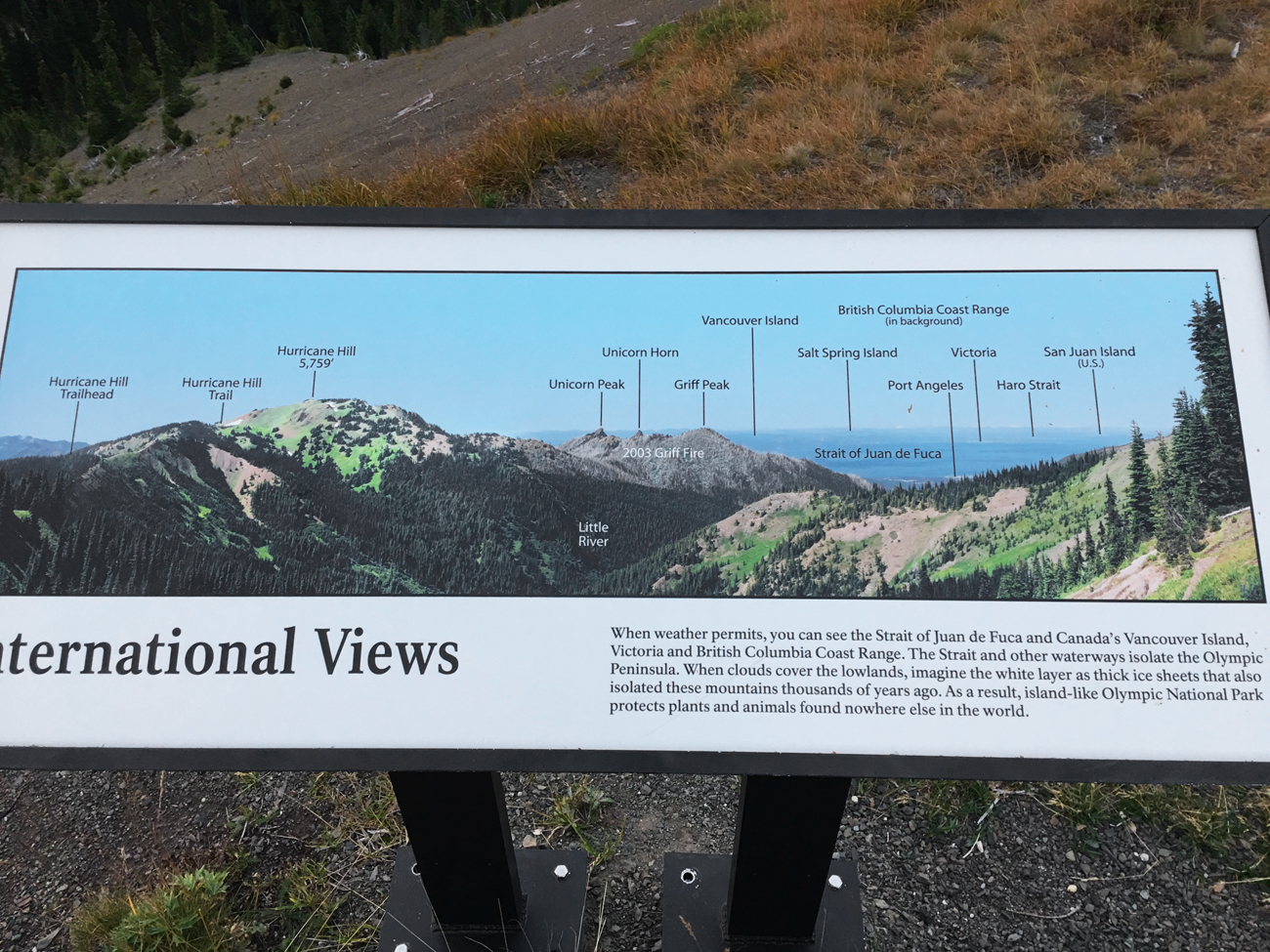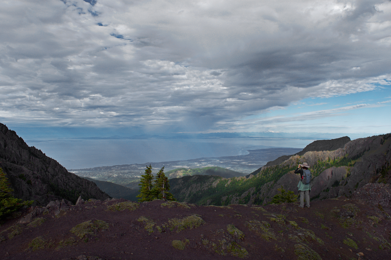 Because we stayed in Port Angeles for a week, we were able to choose the clearest day for the views from Hurricane Ridge, the most accessible mountain ridge on the northern side of the park that provides expansive views at an elevation of 5,242 feet. A 40-minute drive from Port Angeles takes you to the Hurricane Ridge Visitor Center on the top of the ridge. You can hang out and take in the views from there or take one of several hikes along the ridge. We took the hike to Klahhane Ridge, which totaled 7.54 miles round trip with a total ascent of 2,300 feet. The hike follows Hurricane Ridge and then drops down and back up a series of switchbacks to the top of Klahhane Ridge.