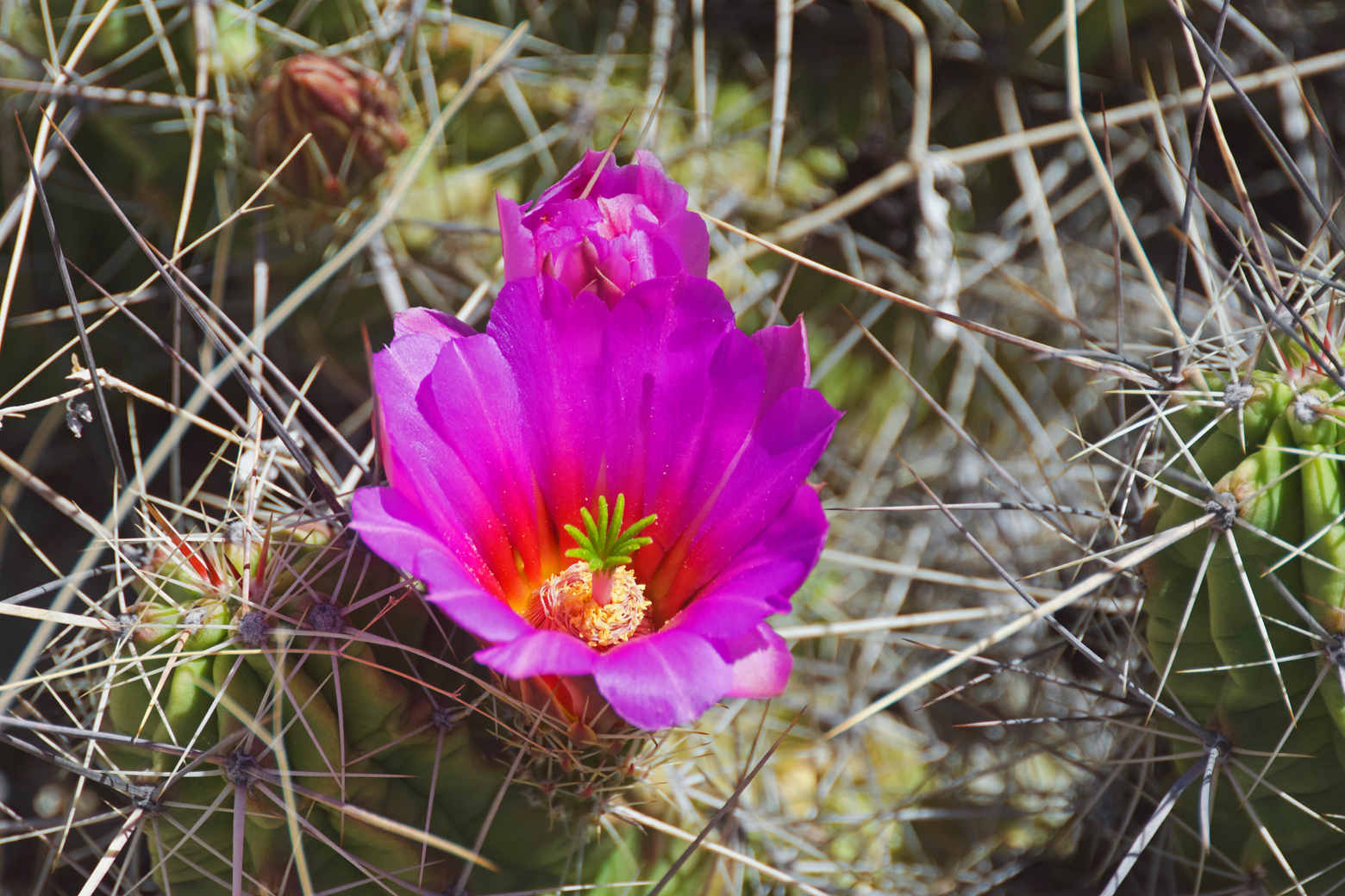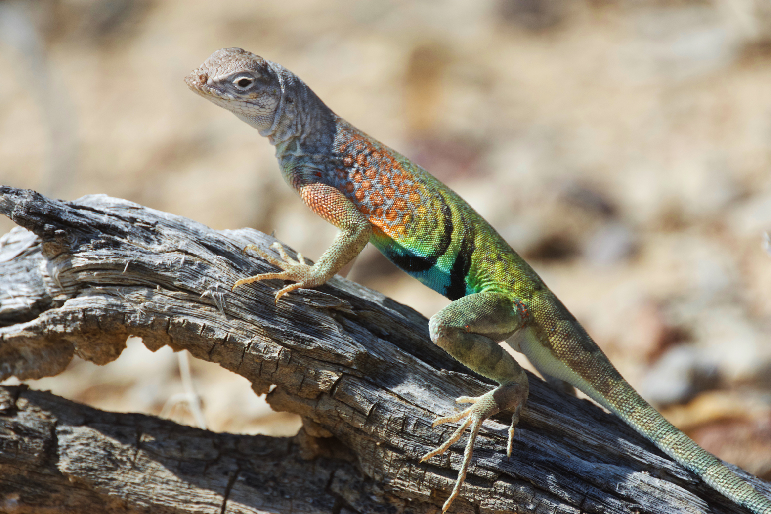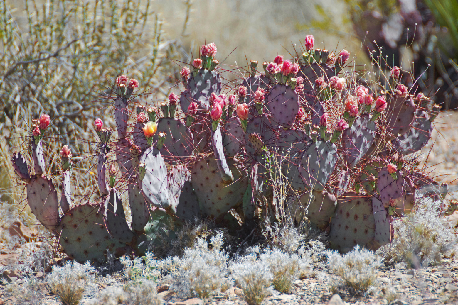 The hike was one of our two favorites in the park for experiencing the Chihuahuan Desert and its colorful inhabitants. The trail takes you across the rocky desert and down into some sandy streambeds filled with bright green shrubs, such as honey mesquite and desert willow. There were vibrant pink and yellow cacti blossoms and lizards scurrying in front of us with almost every step. This was where we got our first look at a greater earless lizard, whose name utterly fails to describe these rainbow-wrapped critters skittering across sand and rock. Orange, pink, green, and turquoise patterns light up the males in the spring and early summer.