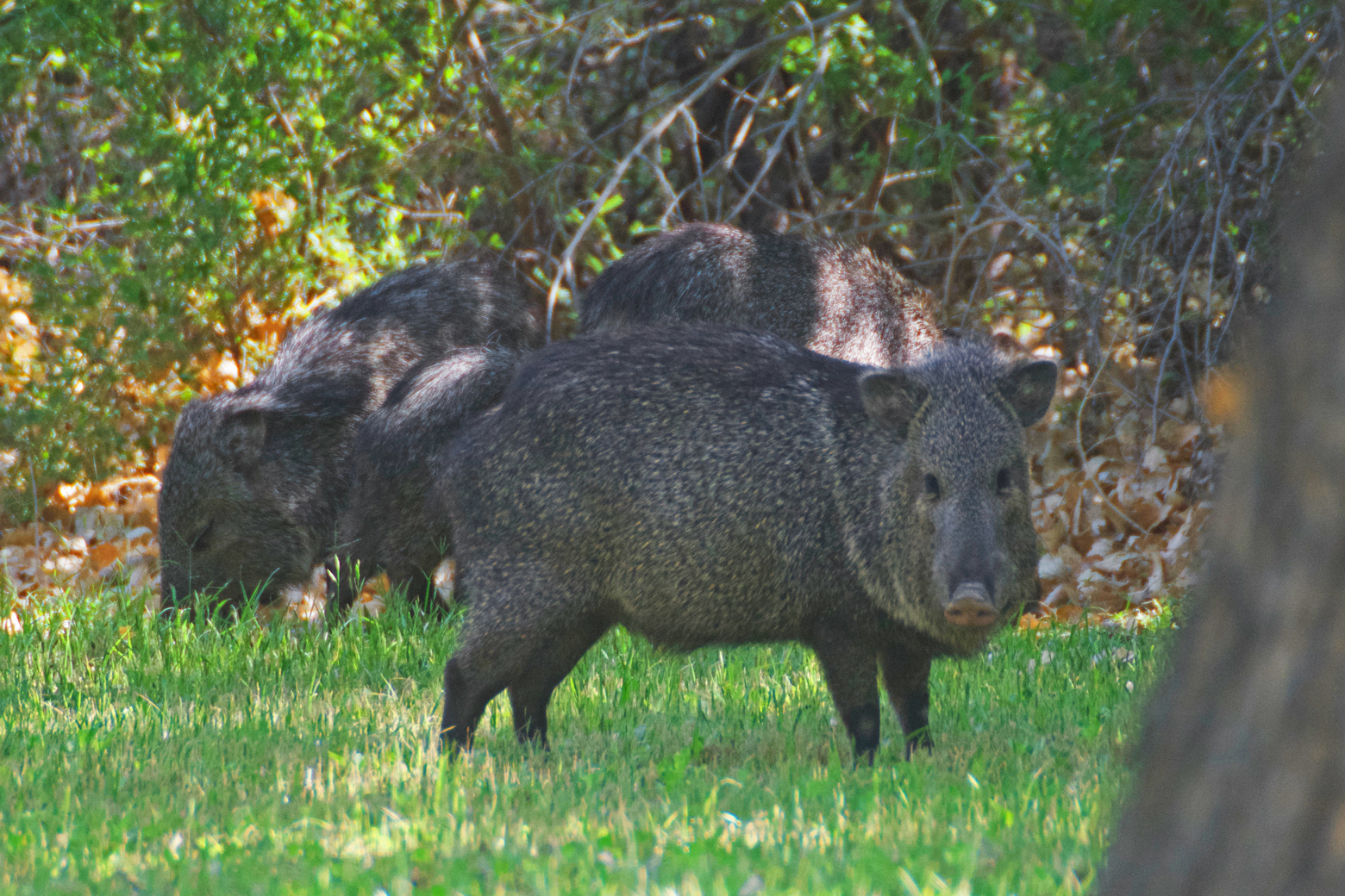 Also in Rio Grande Village, the picnic area at Daniels Ranch is an excellent site for birding. We spent one morning wandering around Daniels Ranch. While we were chasing down a bright red bird that turned out to be a summer tanager, we were surprised by a whole family of javelinas foraging in the grass beneath the trees. The place was loaded with singing Bell’s vireos and the colorful and entertaining golden-fronted woodpeckers.