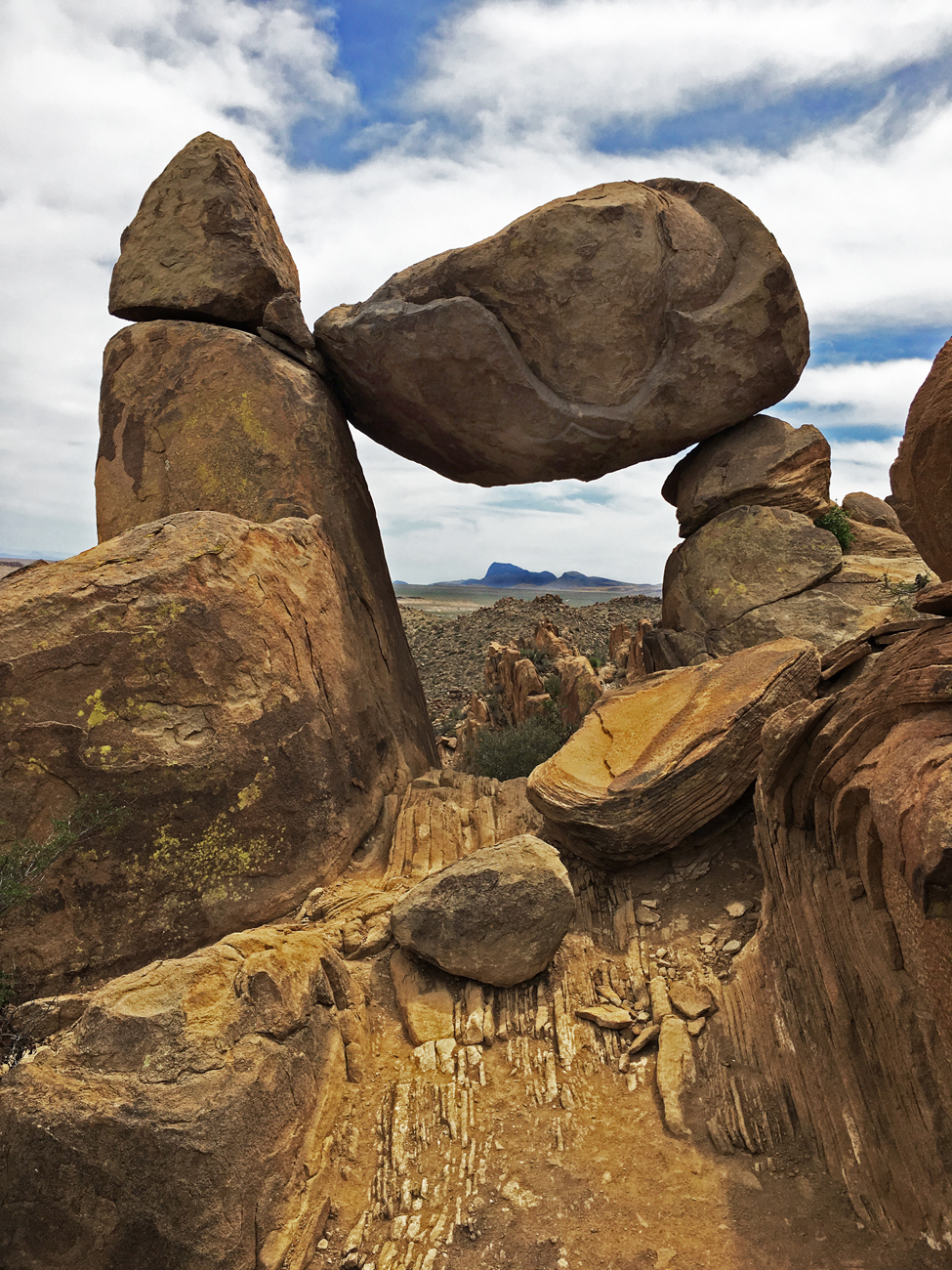 This 2.2-mile round-trip trail is noteworthy for the rock formations in the area, especially the balanced rocks that are the destination for this hike. For herpers (i.e., those who enjoy searching for reptiles and amphibians), Grapevine Hills should not be missed. The trail begins near the end of Grapevine Hills Road, three miles west of Panther Junction. The road is gravel/dirt but in good condition. The hike is a slight but steady uphill walk along a gravel wash through a rocky canyon. The hills on either side of the wash are covered in boulders and interesting rocky outcrops, plenty of nooks and crannies for lizards and snakes.