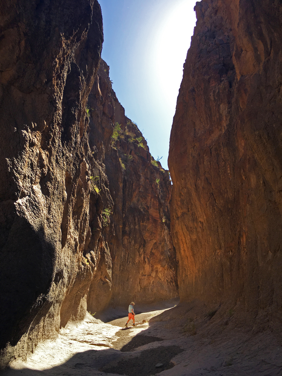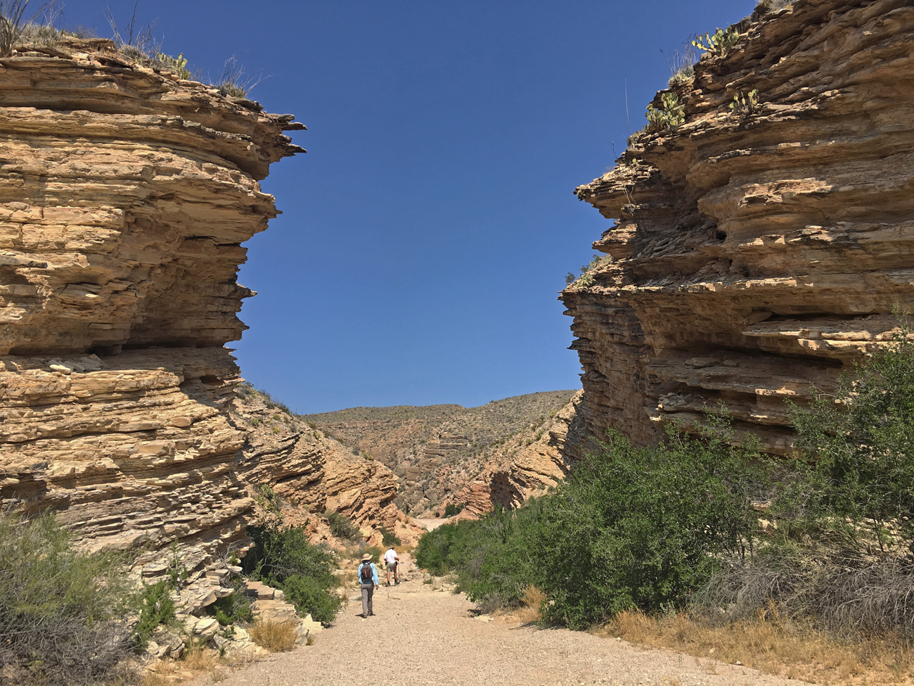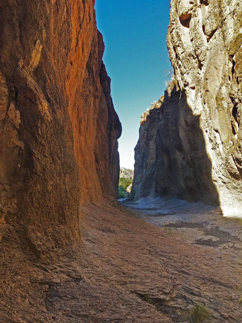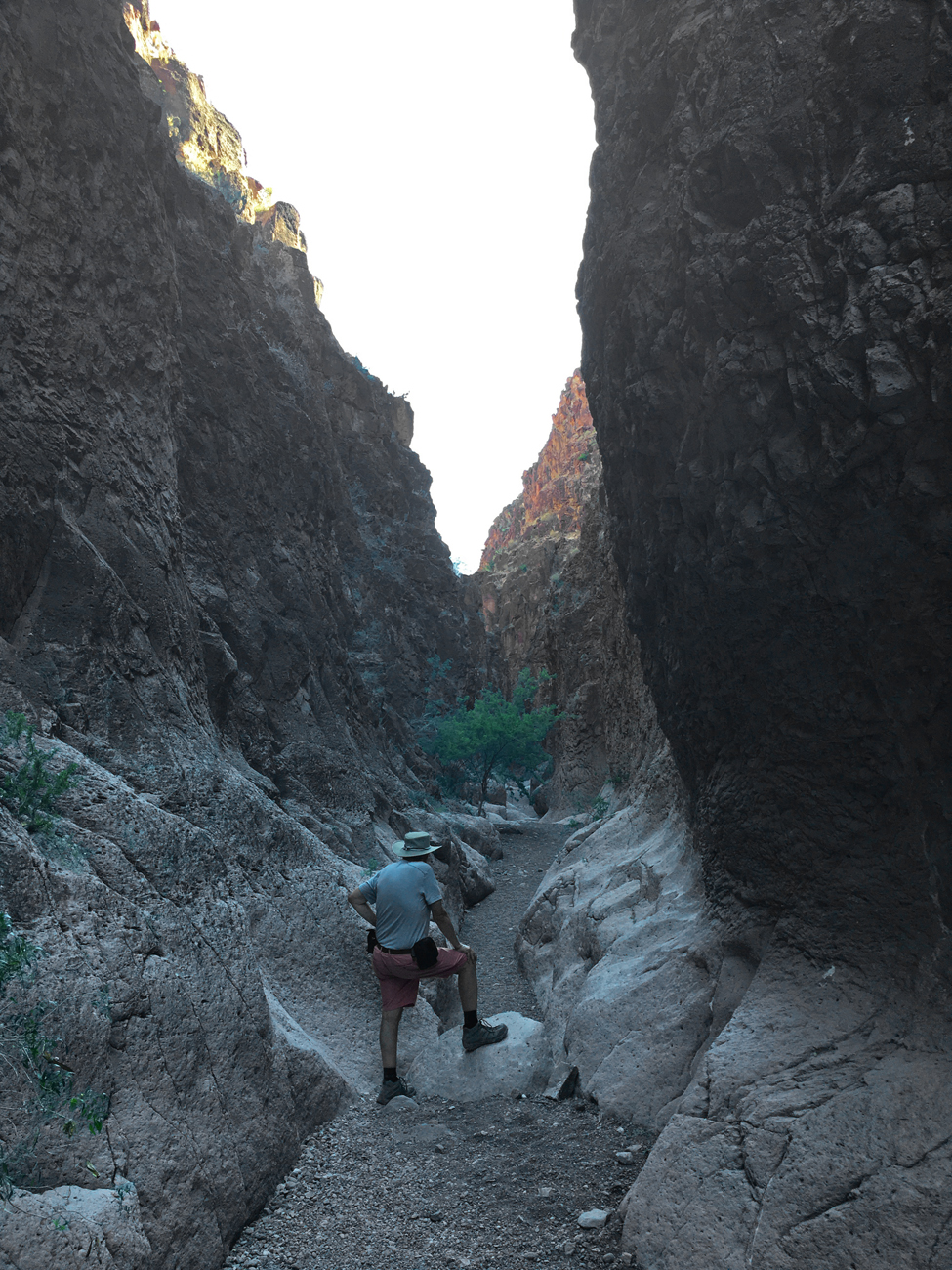 Closed Canyon is a narrow slot canyon formed by a tributary to the Rio Grande. The trail into the canyon begins on the south side of FM-170. On this hot April day with no storms in sight, the canyon floor was a dry trail of gravel deposited by storm flows from a distant memory. The canyon was a refuge. We walked into the shade of the steep walls and felt immediate relief. We followed the path over flood-polished rocks and deep gravel as it descended toward the river. The canyon grew narrower, and the descending steps grew steeper. At a certain point we had to stop. The drop-offs were too high to navigate without climbing gear. Without the satisfaction of seeing the river, we had no choice but to turn around and hike back out of the canyon. This hike was a refreshing break from the heat nevertheless.