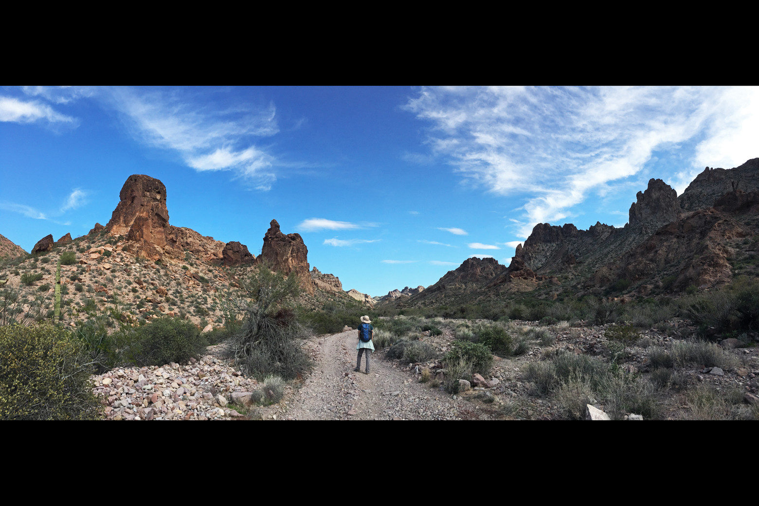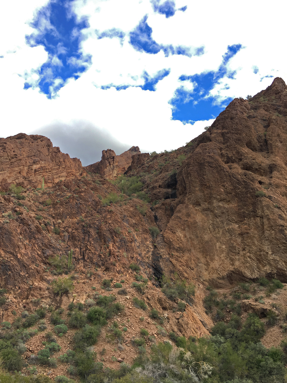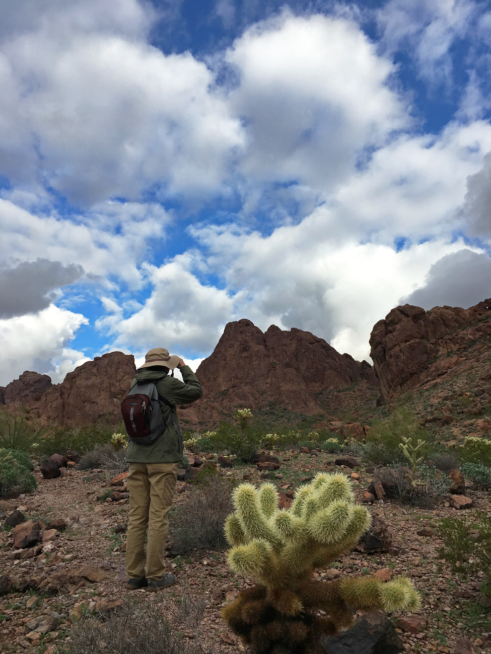 We felt lucky to see these desert mountains the way they should be, with these majestic creatures grazing along the rocky slopes. We couldn’t pull our eyes away. Our arms grew tired from holding up our binoculars! The only downside was that Michael didn’t bring his camera, but maybe if he had, we would not have been so lucky. He did get some photos with his iPhone looking through his binoculars. We kept taking one last look, and then finally we turned and walked our way back along the trail.