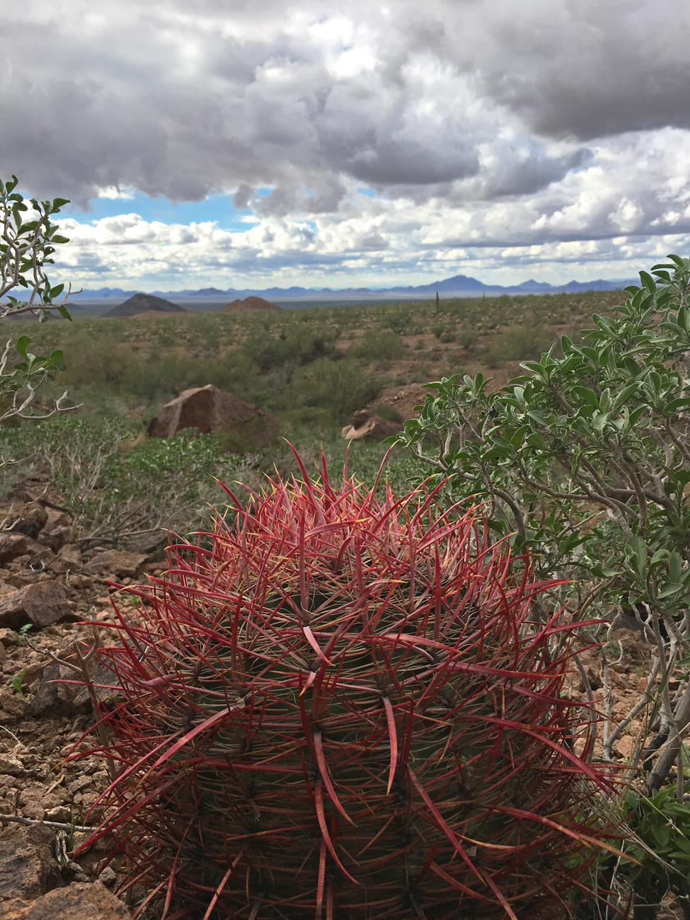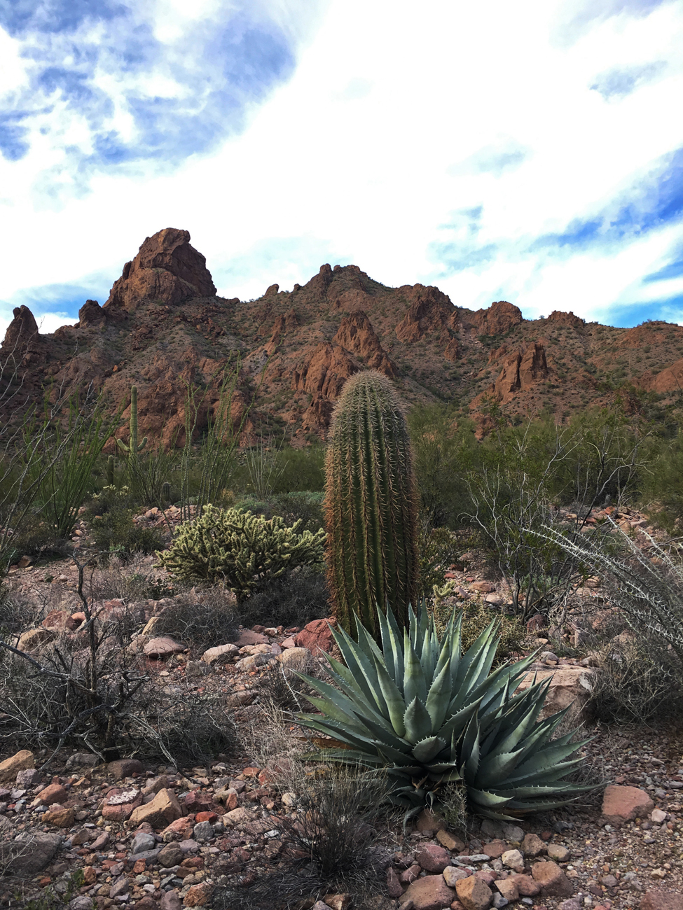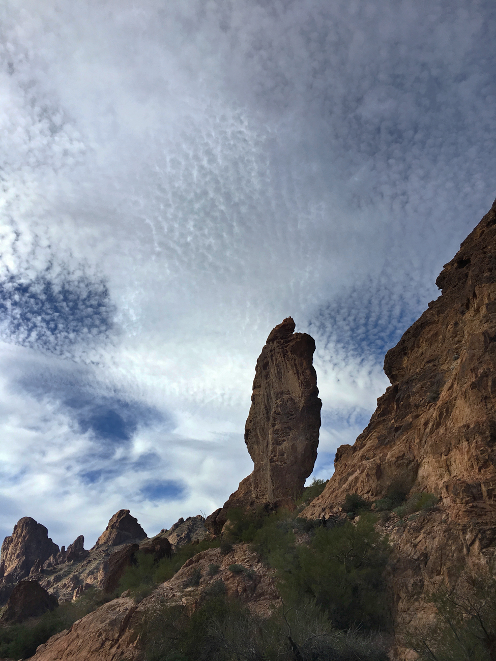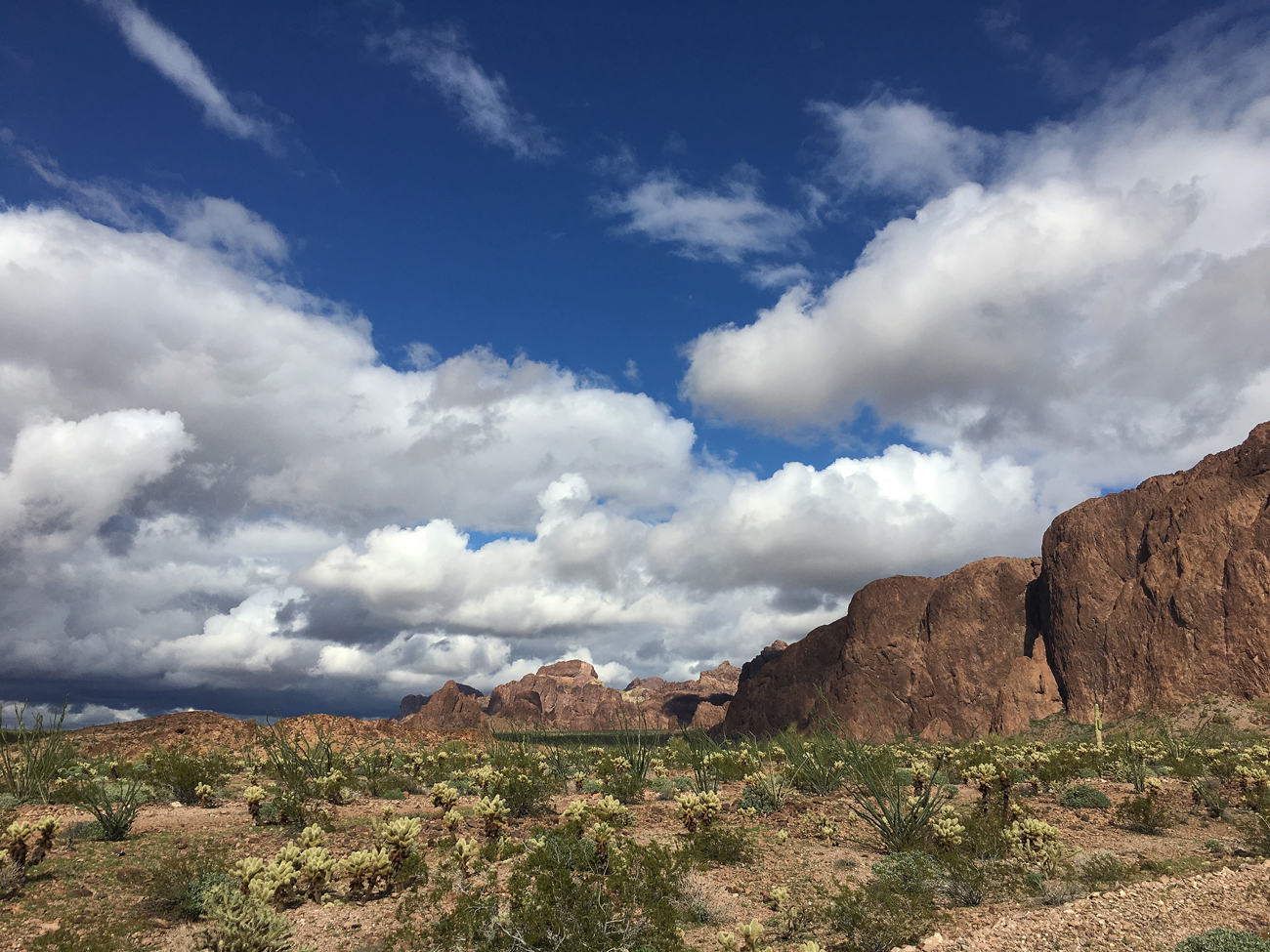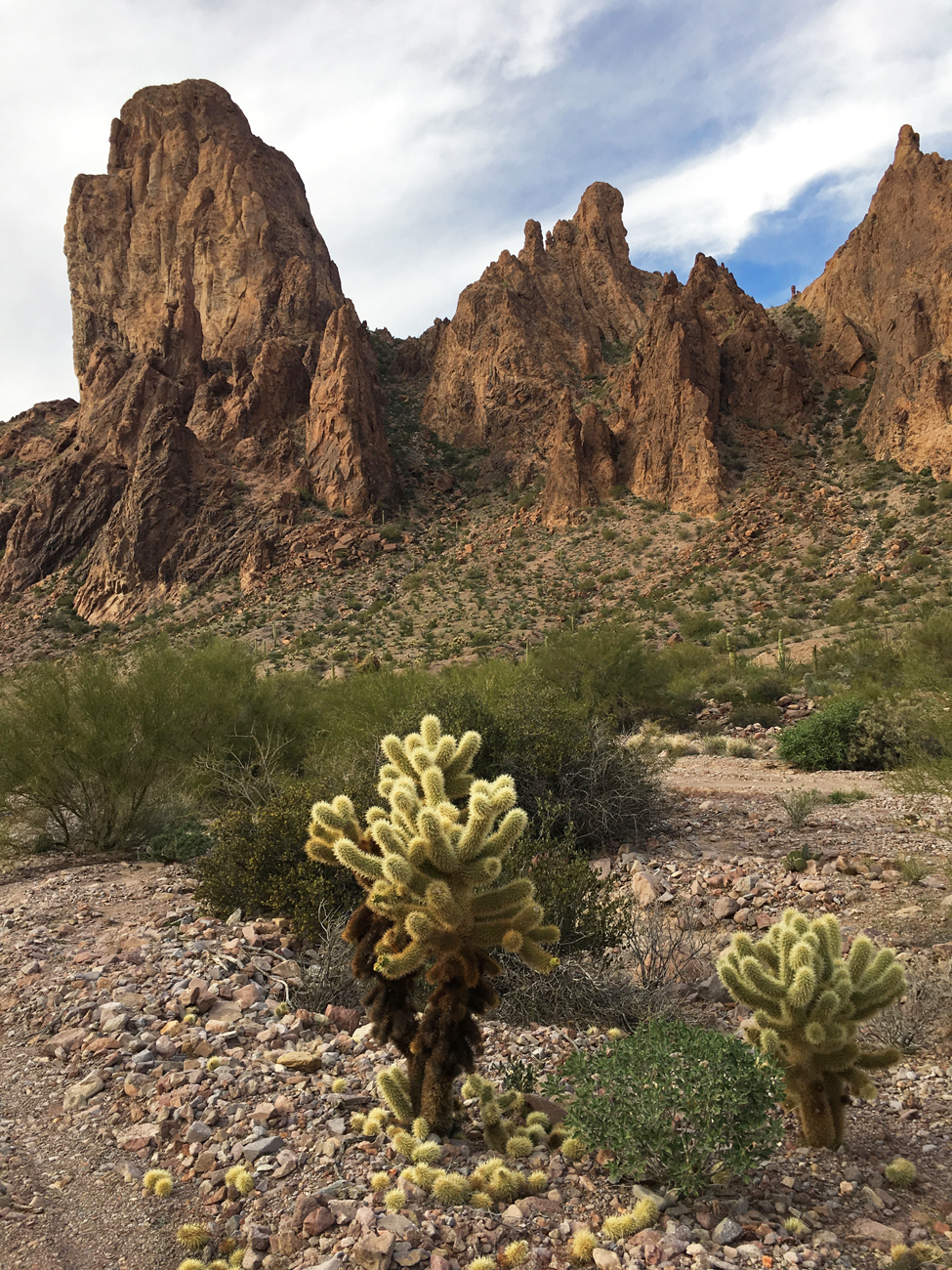 After that first hike, we suffered through a full day and night of 30 mph winds with 40-50 mph gusts blowing sand at our trailer (the mountains were no longer visible with all the desert dust in the air), and then a full day and night of rain. Following the storm, we ventured out in the afternoon for a walk. It was a chilly day for this part of the world. We had enjoyed a couple of weeks in the mid-seventies in the deserts, but on this day, the high was 62 degrees Farenheit, and the wind made it feel a lot cooler.