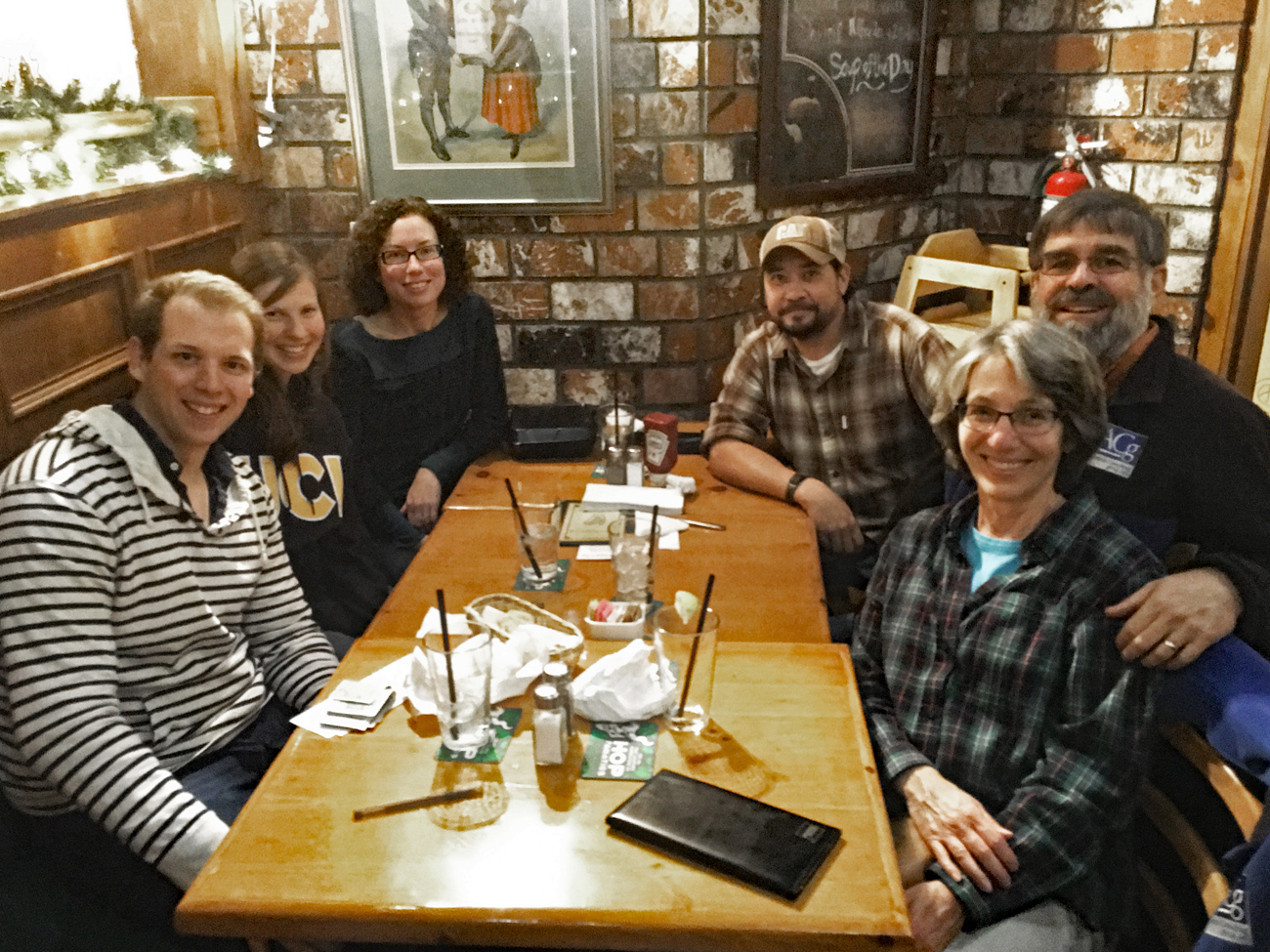Back to Riverside to park our trailer at a storage facility and fly from Ontario Airport to Dulles to visit my family and friends in Maryland for Thanksgiving. Hung out with my dad at the house, helping him shore up the back porch in preparation for solar panels on the roof and hiking on Sugarloaf Mountain. Visited some of my dearest college friends: Sabrina in Washington, D.C. for one of her delicious home-cooked meals and Elizabeth along with her husband and brother-in-law at BJ’s in Frederick for hours of lively conversation. Drove down to the Danko family house in White Stone, Virginia to spend some quality family time with my aunts and uncles. Ate Thanksgiving dinner with my parents at my mom’s new home in the memory unit of the Edenton Retirement Community in Frederick. Flew back to Ontario Airport with my dad, since he had a week of work meetings at ESRI in Redlands following Thanksgiving (for his part-time retirement work!)