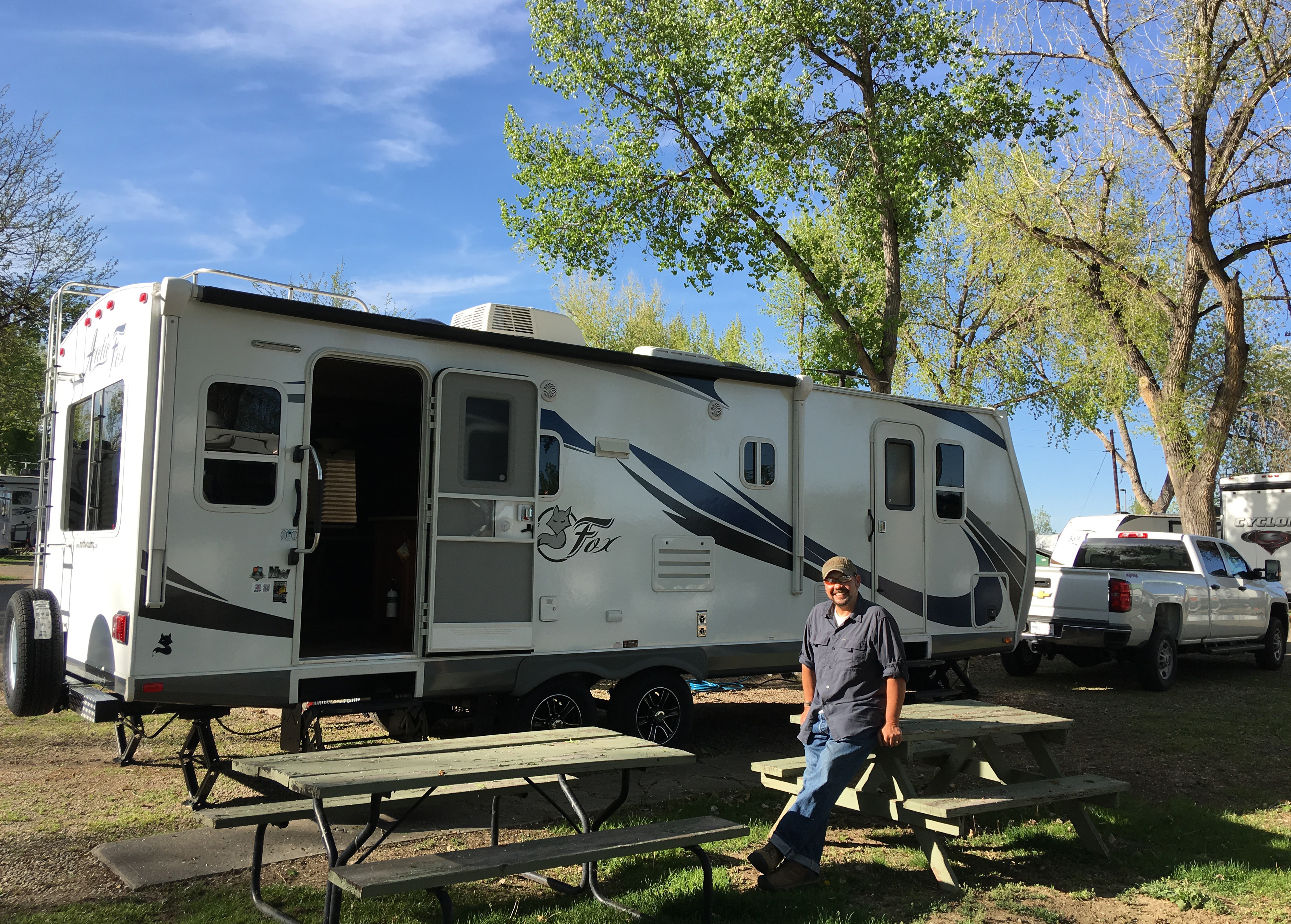 Since Michael’s job in Macon was finishing up, we packed up our minimalist apartment in a U-Haul trailer and donated some of the stuff we knew we couldn’t fit into the travel trailer to charity. On May 5, 2016, we drove from Macon, Georgia to White Stone, Virginia to drop off some more of our stuff at the Danko family home and visit with some of my family there. Next, we towed our U-Haul trailer to Longmont, Colorado, moved our stuff into a small storage unit there for a day, picked up our new Arctic Fox, and then moved our stuff into our new “home on wheels!” We spent our first nights in “Foxy” at the Loveland RV Resort in Loveland, Colorado.