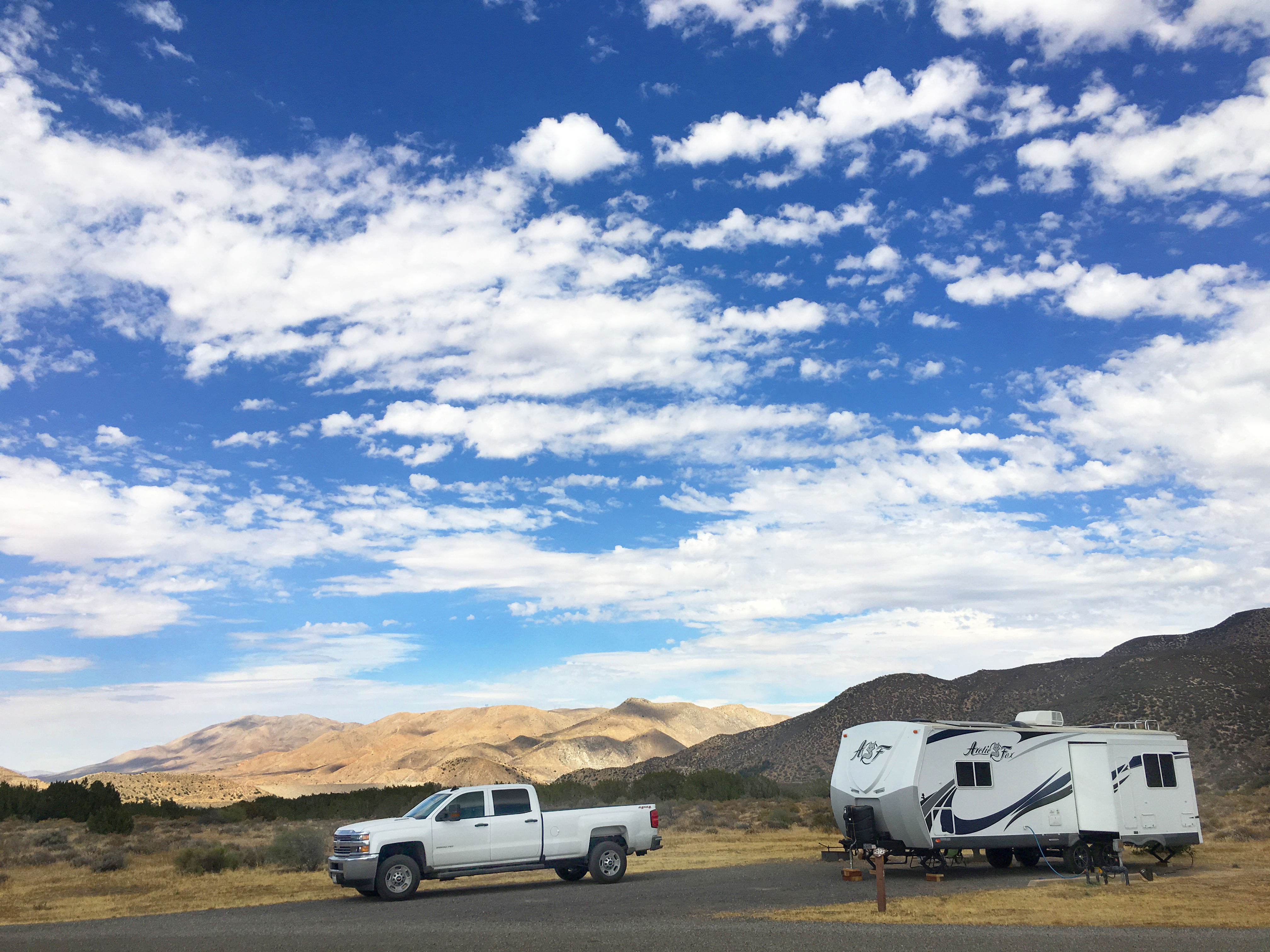 Our first dilemma was which kind of rig would suit our travels. Way back when we first played with the idea of taking a year off from our routines and traveling, we imagined outfitting our pickup truck to comfortably sleep in the back and store a minimal amount of stuff needed to survive. We would live out of our truck for a year! When we left our home in Ventura for Michael’s yearlong job in Houston, we were starting to consider a teardrop trailer for the added space. However, the reality of my health issues (more on that story is here), my special diet, and other needs led us to dive head-first into the RV lifestyle, and we ended up debating between two options: Motorhome plus Dinghy (small vehicle for exploring) or Truck plus Trailer. We put together a table of thoroughly researched pros and cons for each choice, and after many weeks of going back and forth, we settled on the Truck plus Trailer.