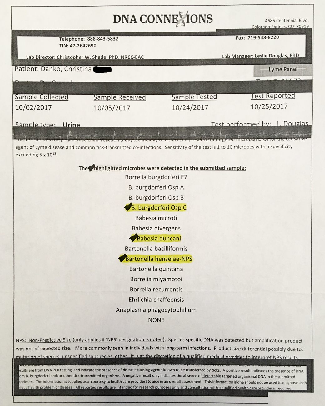 My logical and science-trained mind convinced me to move forward with the test. If the DNA of tick-borne bacteria were in my urine, then they could certainly be at least partially responsible for my never-ending sickness.