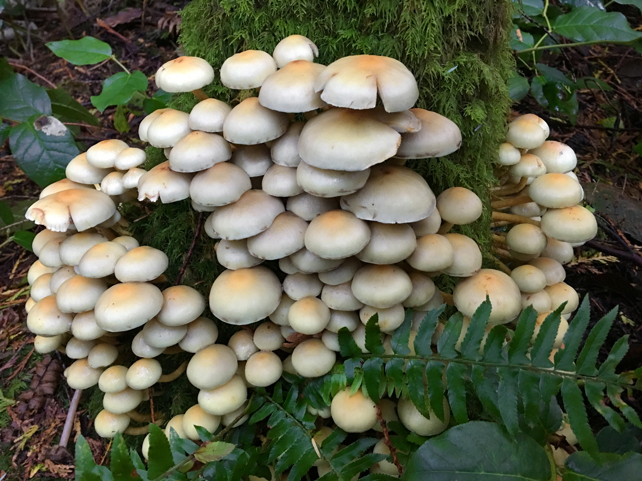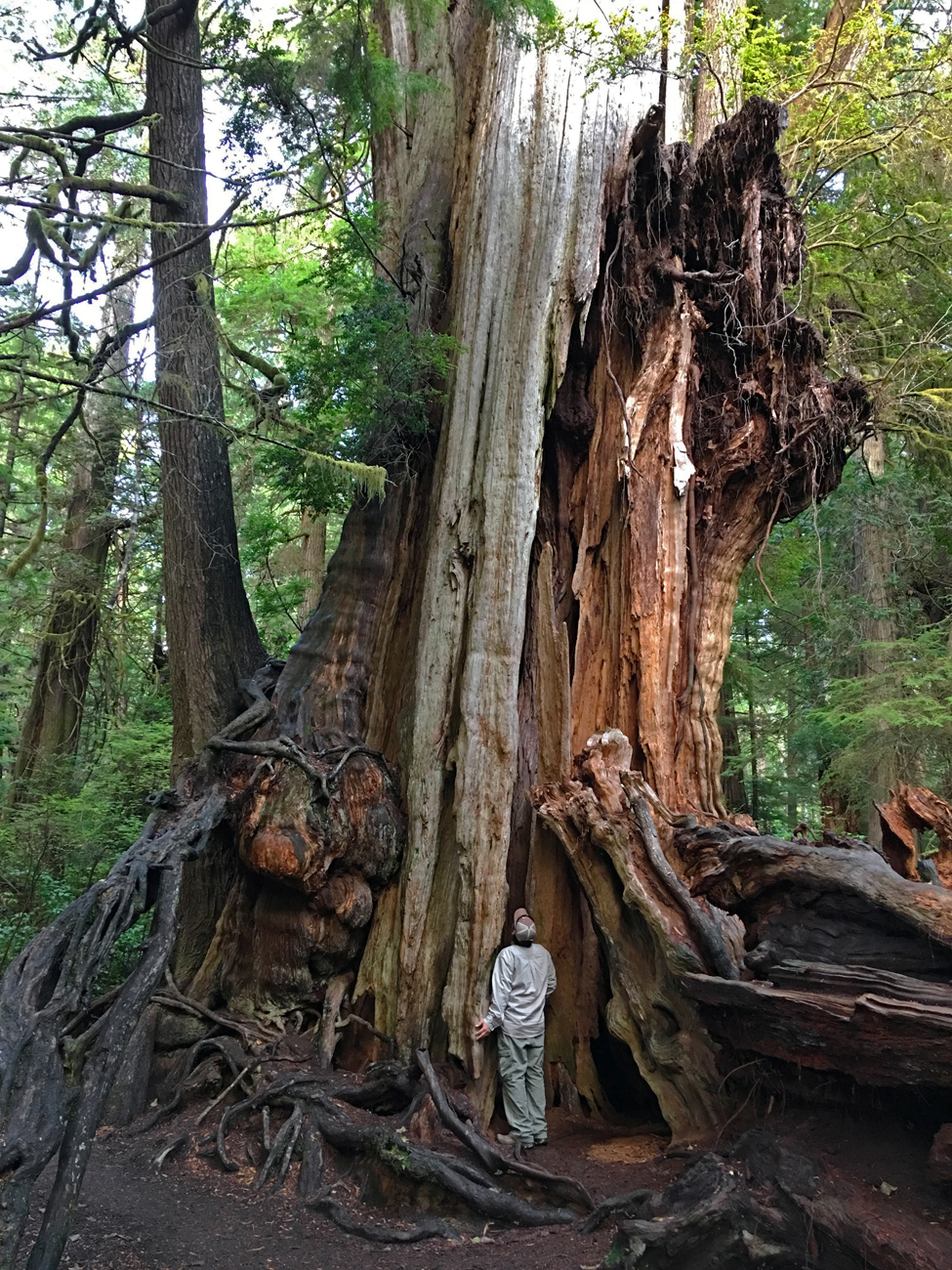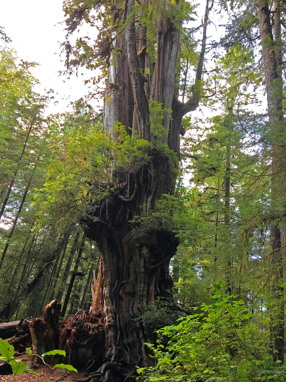 South of Ruby Beach and just off Highway 101 is Big Cedar Tree. There were many large, old-growth cedars in this area, but the path led to one that really was an entire ecosystem on its own. The oldest part of the tree had died already, and part of it had fallen over. Younger cedars grew out through the middle of the tree. Other species of trees, including hemlocks, and some shrubs were growing out of the sides of the tree after rooting themselves to this cedar many years ago. When Michael stood in the center of the tree where it had been hollowed out, it reminded me of the Keebler Elf tree!