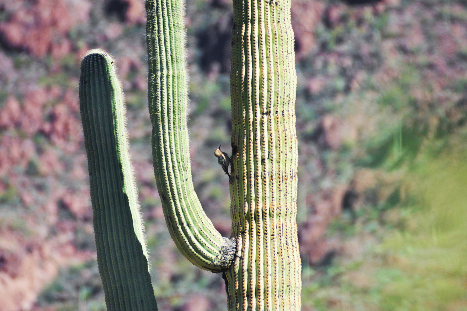 I have to give a shout-out to National Geographic, because they introduced me to the desert and sparked my keen interest in the Sonoran Desert before I even visited in person. I adored their pop-up book titled Creatures of the Desert World when I was a kid. I found the almost human-shaped saguaro cacti fascinating, and I opened the flap to the packrat nests and viewed the elf owl inside the saguaro cactus over and over. Growing up in Maryland, these strange plants and critters intrigued me. I have held this interest in the desert ever since. Walking through Organ Pipe Cactus National Monument, I was reminded of that pop-up book. When we walked into the Visitor Center, there it was by the cash register, and we simply had to purchase one!