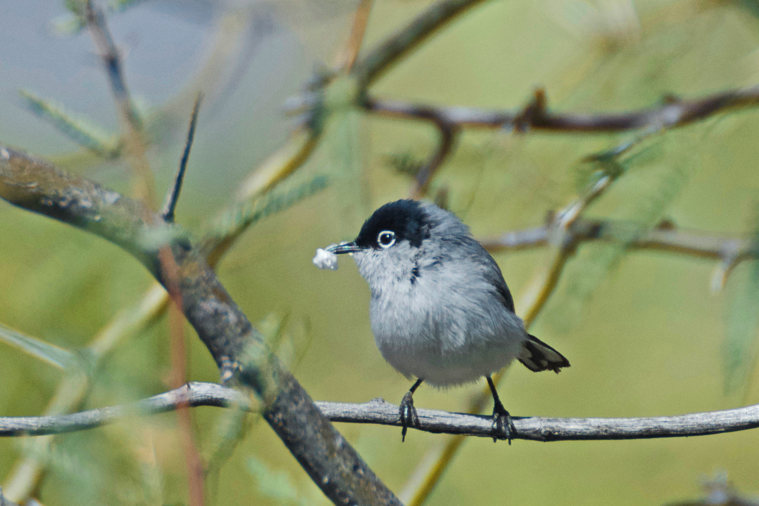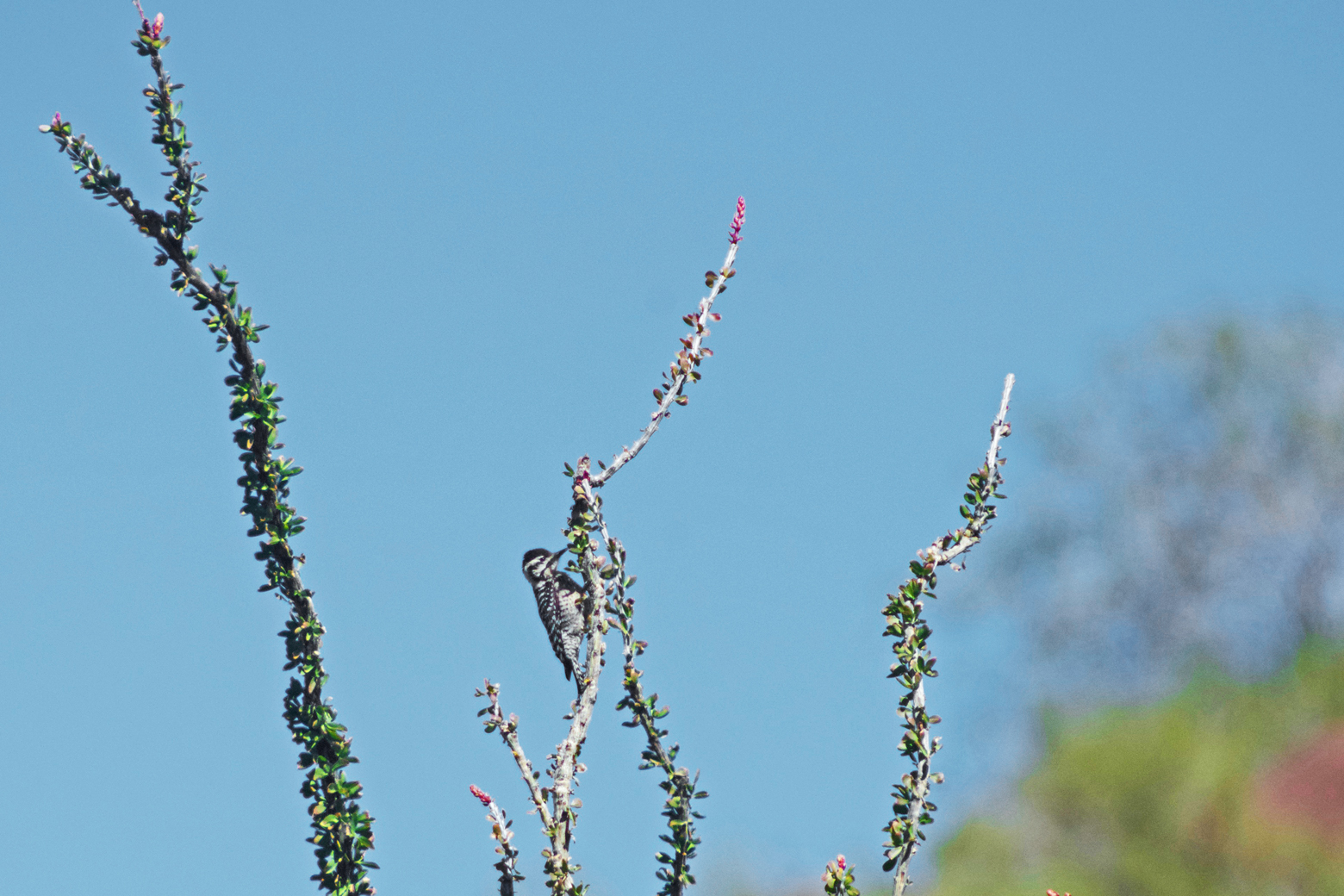 For our last day in Organ Pipe, we chose to take the one-mile walk up Alamo Canyon, which was recommended by the National Park Service for birding. There is a small tents-only campground at the beginning of the canyon, a beautiful setting if you are tent camping. One of the more significant washes in Organ Pipe flows out of Alamo Canyon. There was even some surface water present in sections of this wash, which makes it attractive to the birds. We enjoyed a pleasant bird walk, and discovered some beautiful wildflowers by the stream. Birds of the day included phainopeplas, cactus wrens, rock wrens, verdins, Gila woodpeckers, gilded flickers, a ladder-backed woodpecker, an ash-throated flycatcher, and a black-tailed gnatcatcher that posed for us long enough to get an up-close look. We sat peacefully by the stream and listened to the sound of the water flowing through the quiet of the desert.