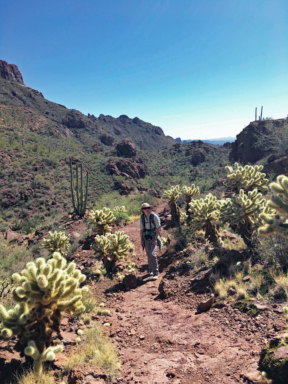 We found it difficult to leave the Twin Peaks Campground the next day. The sun was shining and the temperature was seventy-something degrees and just right. We stood among the cacti, palo verde, and ocotillo chatting with our friendly neighbors. Leaving just didn’t feel right.