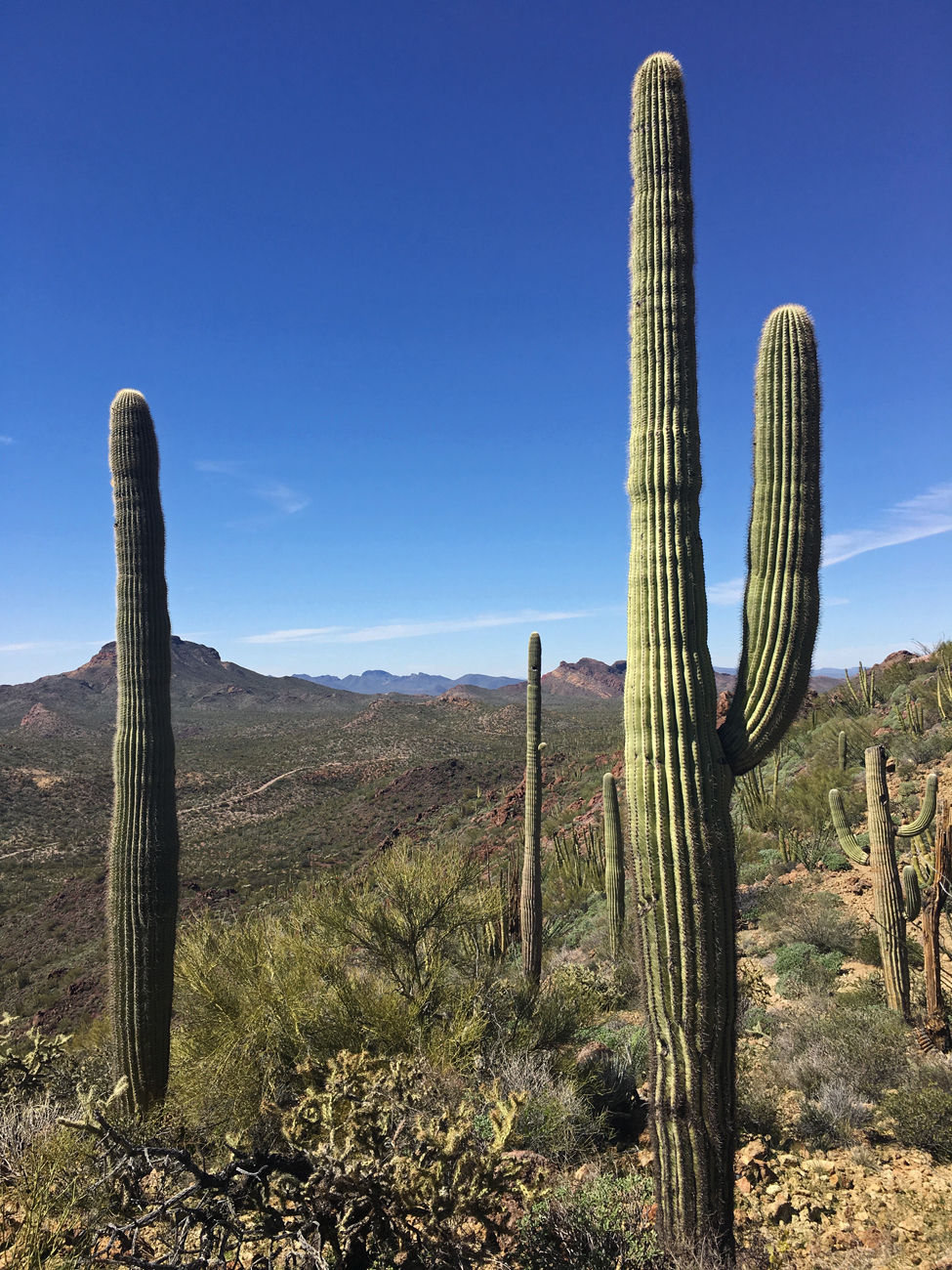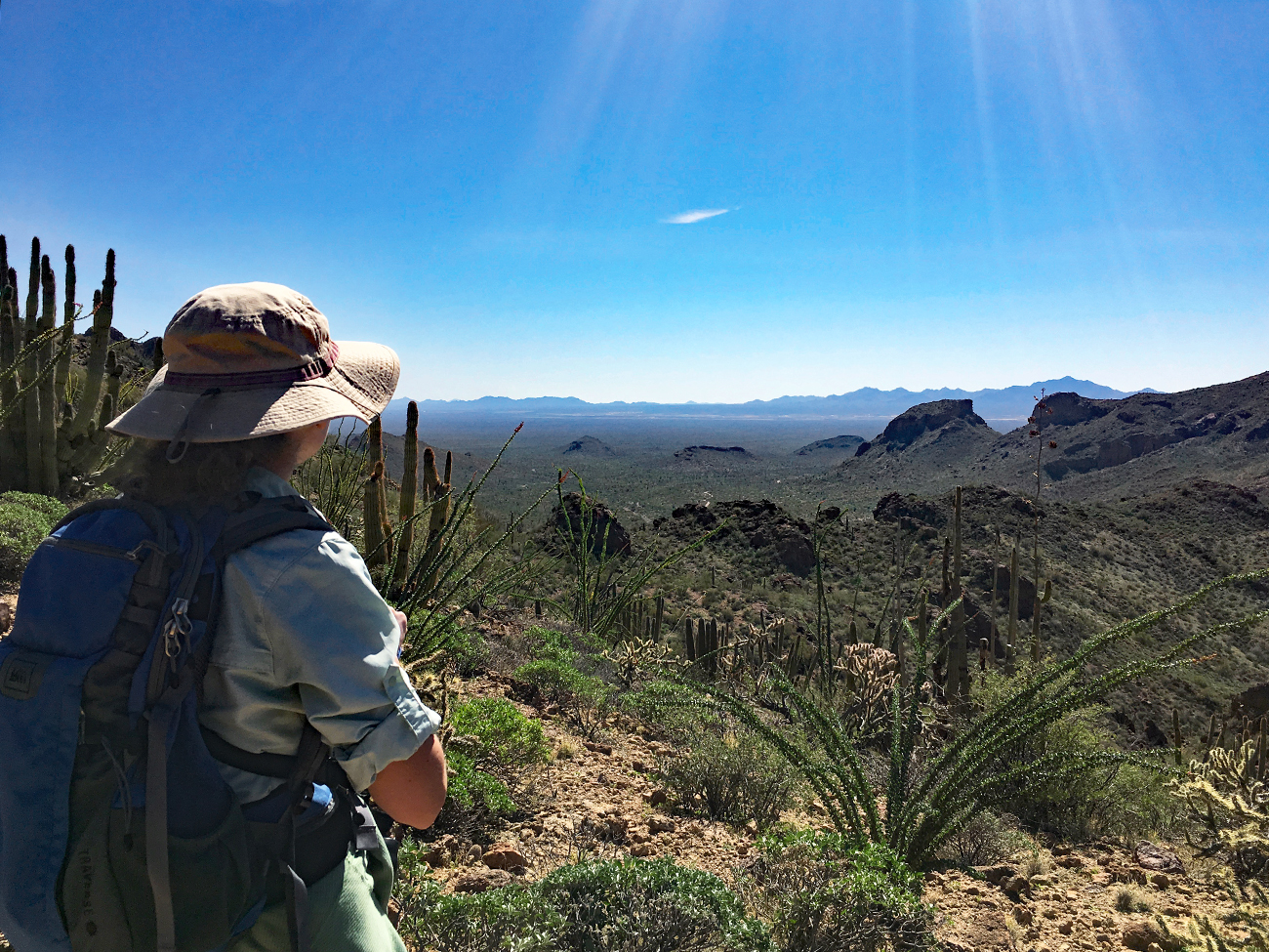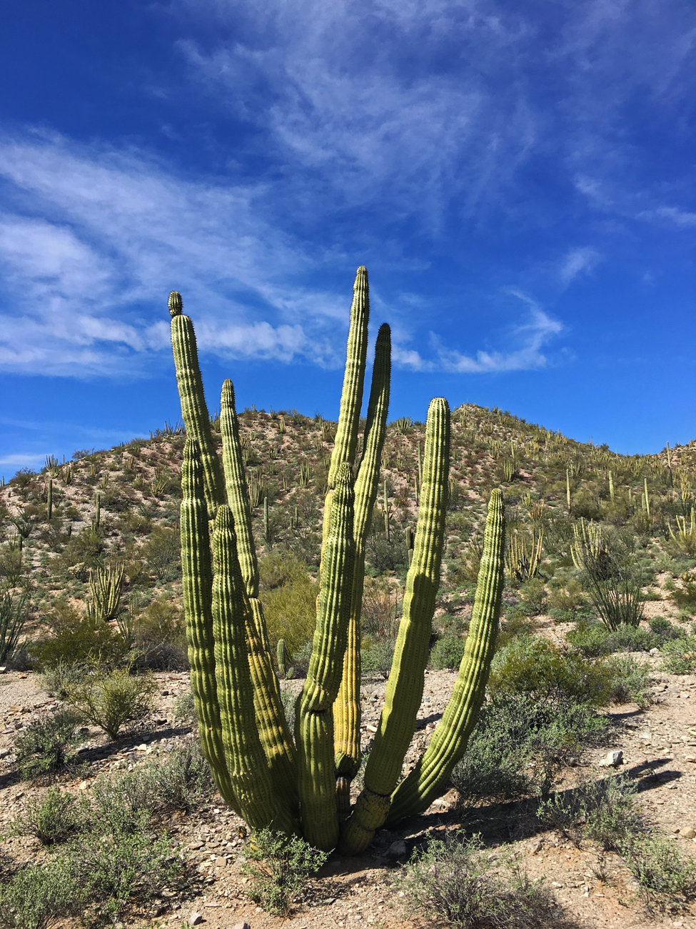We spent six nights at Organ Pipe and made it out to hike or explore almost everyday. When our time was up, we did not want to leave. Organ Pipe ranked as one of those places we would like to return to again and again. Of all the public lands we have explored within the Sonoran Desert, we found Organ Pipe to be the ultimate place to experience this desert. Like Saguaro National Park, it is densely vegetated with the stately saguaro cactus, but unlike Saguaro National Park, a hike to the top of a mountain provides views of vast, undeveloped desert rather than the city of Tucson. Don’t get me wrong. We are still fond of Saguaro National Park and other attractions in the Tucson area, but at Organ Pipe, we felt fully immersed in nature. It is one of the hidden gems of our national conservation lands.