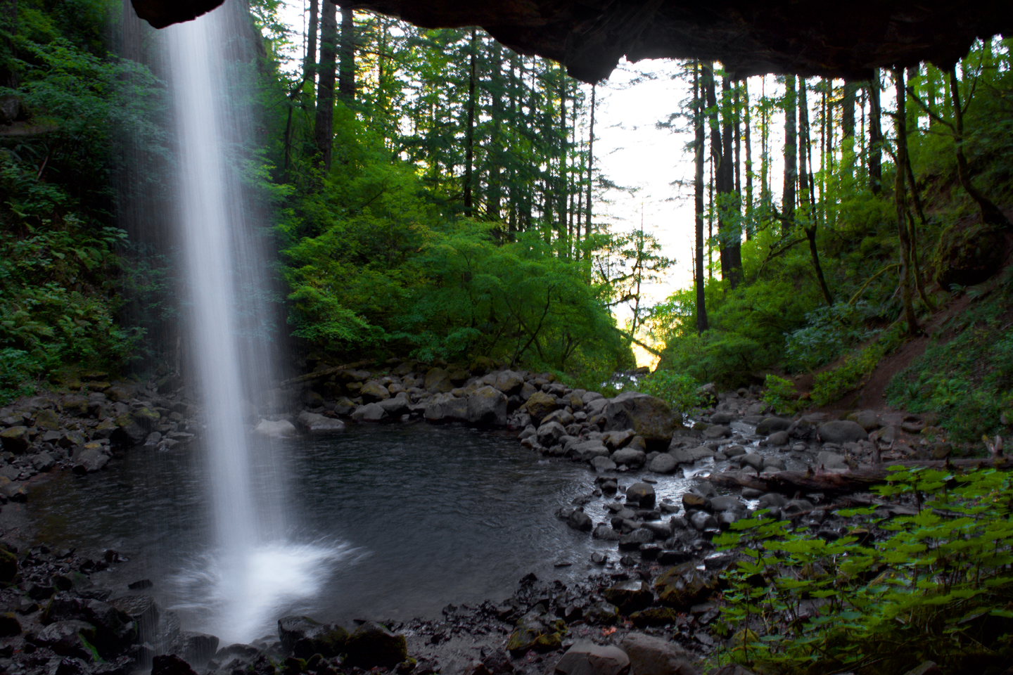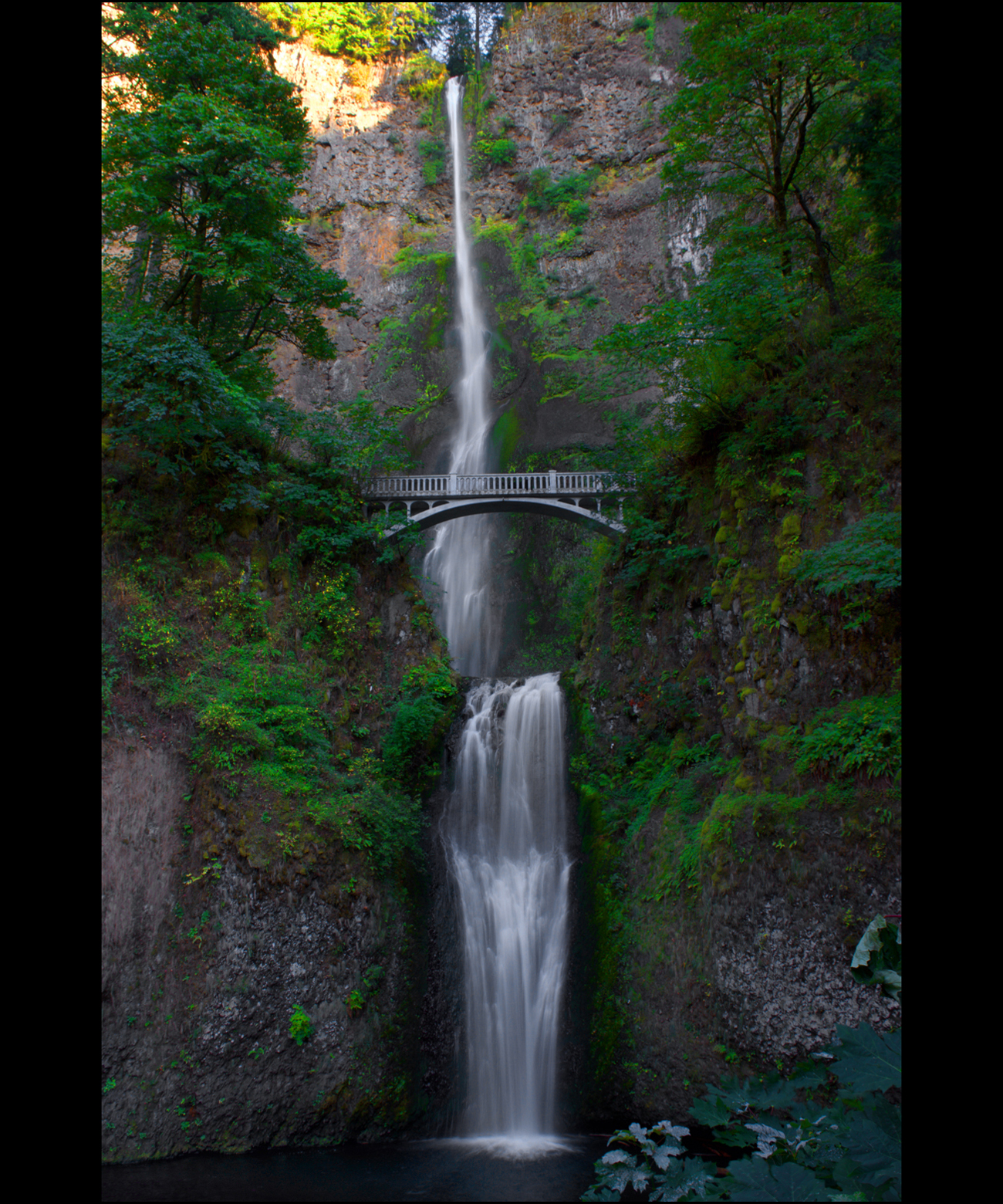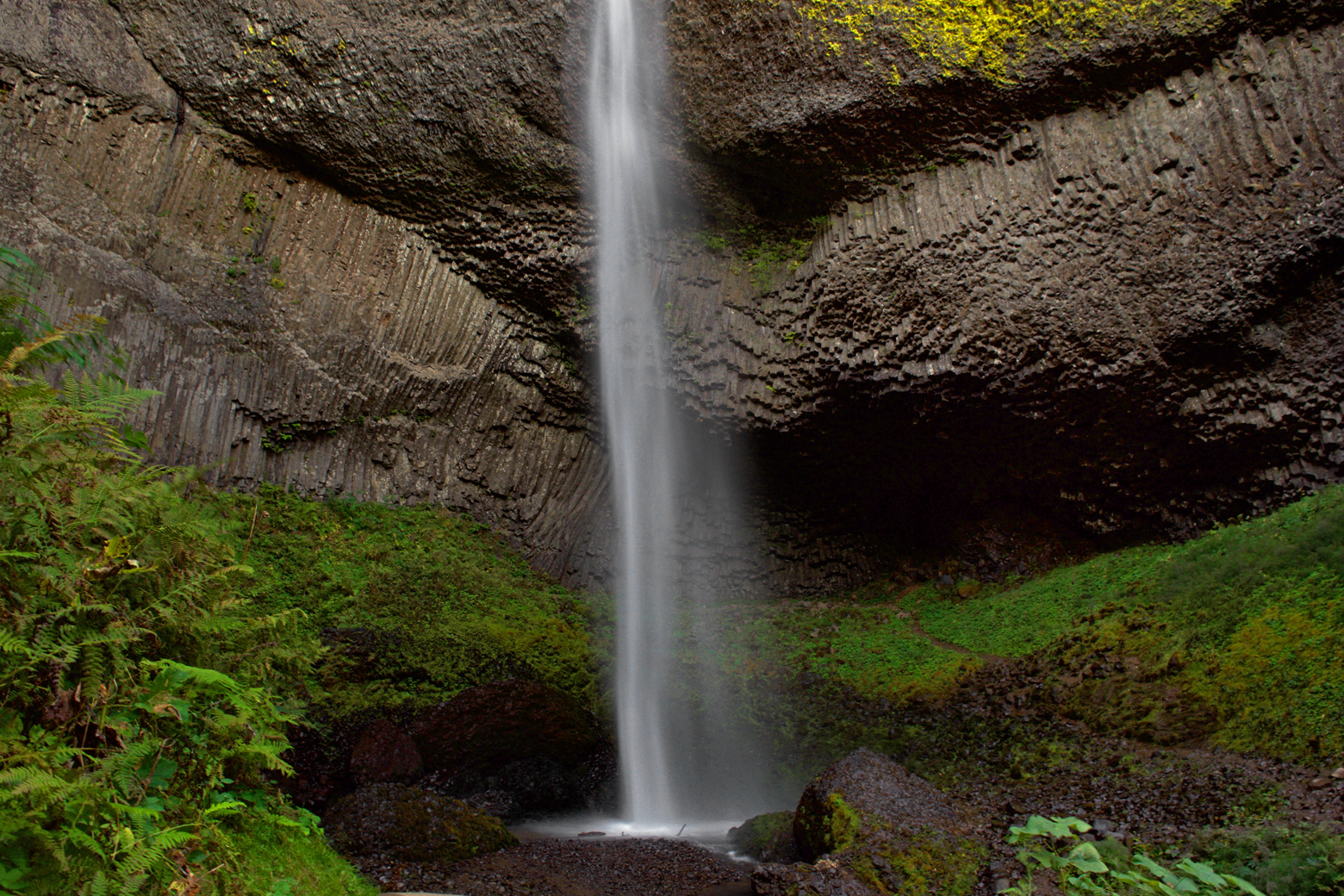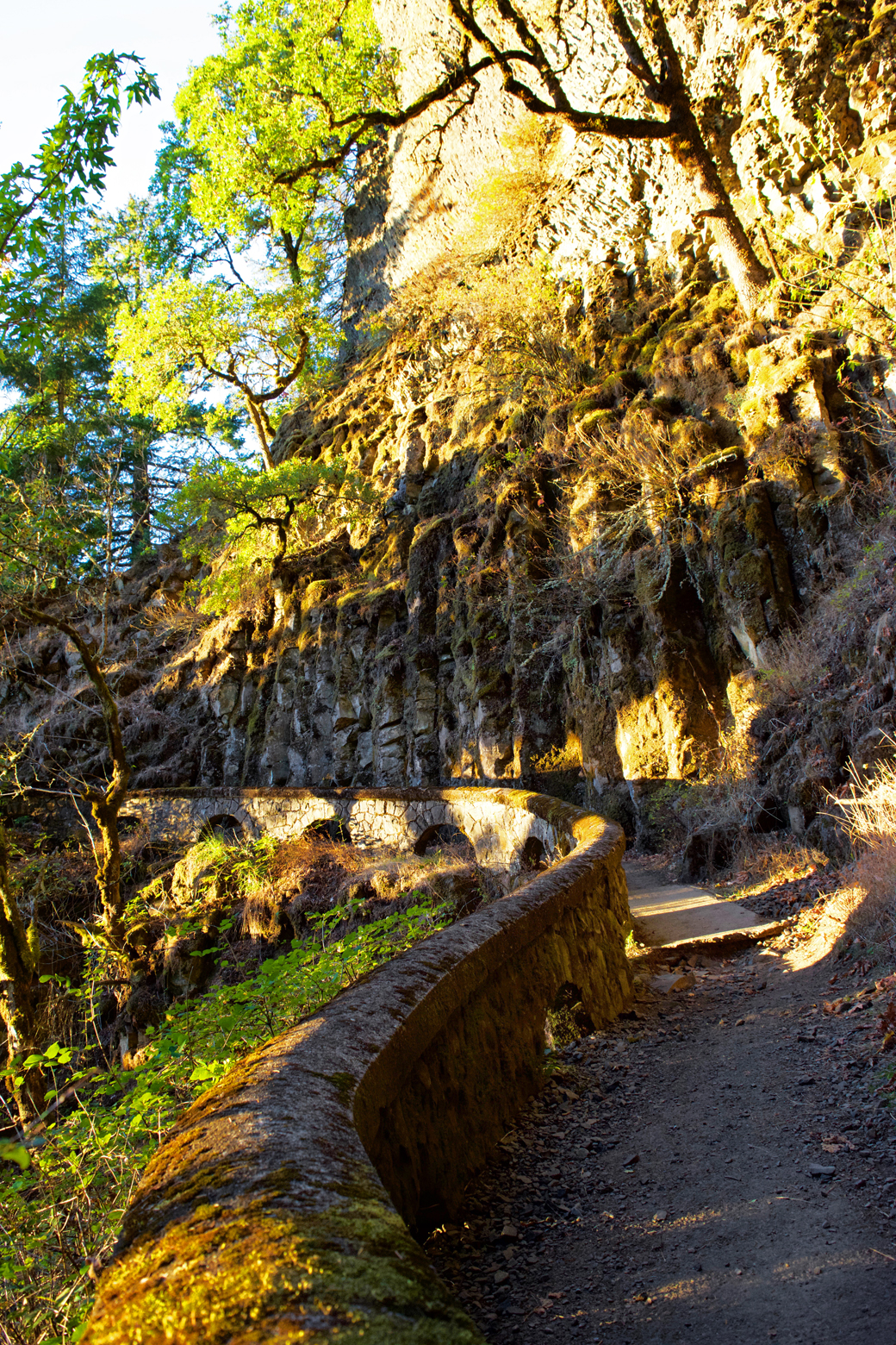 We made it to Latourell Falls just before sunset. These are the only falls we managed to see on our last Portland trip, and we arrived at nearly dusk the last time as well. This time, the falls were much more narrow, given the dry time of year, but these are still my favorite falls of the Gorge. The wall behind the falls is concave and composed of basalt in the shape of vertical columns, a distinctive rock formation. Bright yellow lichens grow on the upper levels of rock closest to the falls, and the water free-falls away from the wall and plunges into the pool far below the cliff’s edge…stunning!