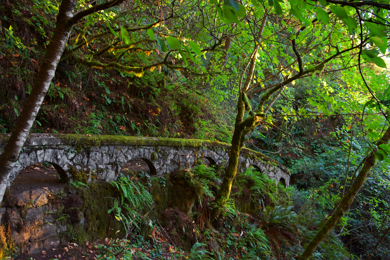 On our return trip to camp, we stopped at the roadside Shepperd’s Dell Falls. Shepperd’s Dell is a narrow gorge with multiple levels of falls that are relatively difficult to view. Perhaps one of the more interesting features of Shepperd’s Dell is actually the walkway and stone wall built into the cliff that provides access to the falls. The moss-covered stone arches along the walkway give the impression that you are walking in an ancient city.