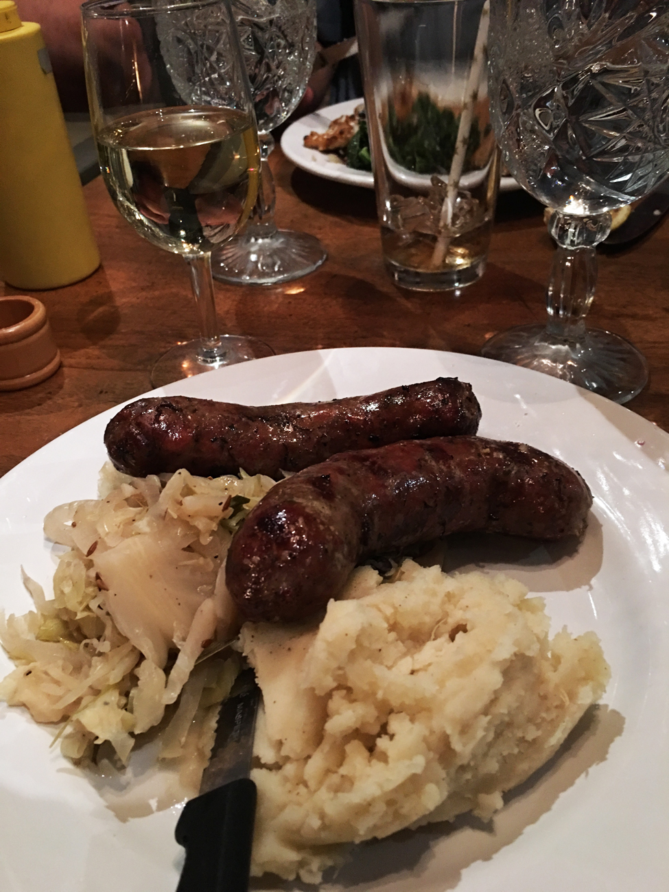 Speaking of delicious food, while we were in the Portland area, we just had to return to two of our favorite restaurants from our last trip. We shared our favorite finds with our friends. First, we dined with our friends Michael and Stephanie, and their Vancouver friends Michael and Corrine at the Slide Inn. The Slide Inn combines delicious German and American food (think homemade sausages, schnitzel, and sauerkraut) with a comfortable and artistic atmosphere. Lucky for us, the chef (and owner) also caters to people with special diets. We sat around a long table in the front windows eating spatzle, pork wiener schnitzel, beef rouladen, Hungarian sausages, sauerkraut, and homemade ginger beer. It was the perfect combination of flavors and conversation with friends.