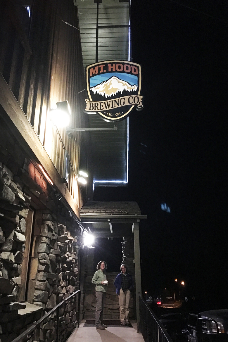 On our last sunny day in Portland, we joined our friends Michael and Stephanie Tiffany from Ventura, on a drive up to Mt. Hood. They were in the area visiting with some friends in Vancouver after spending a few days with us in Trout Lake. We gave Blondie (our heavy duty truck) a rest that day and piled into our friends’ rented Mini Cooper and made the long and windy trek up to the timberline of Mt. Hood. After a quick lunch at the Timberline Lodge, we hiked along part of the Pacific Crest Trail, enjoying views of Mt. Hood’s peak, the alpine plant life and birds, and the valleys and mountain ranges below. After a leisurely hike, as the sun was setting, we descended the mountain and stopped at Mt. Hood Brewing Company for dinner. When was the last time you saw deviled eggs on a restaurant menu? Well, here they were superbly satisfying. I had steelhead trout for the first time, which is closer to salmon than freshwater trout, and it was cooked just right with a soft and flaky texture accompanied by a creamy lemon sauce. Delish!