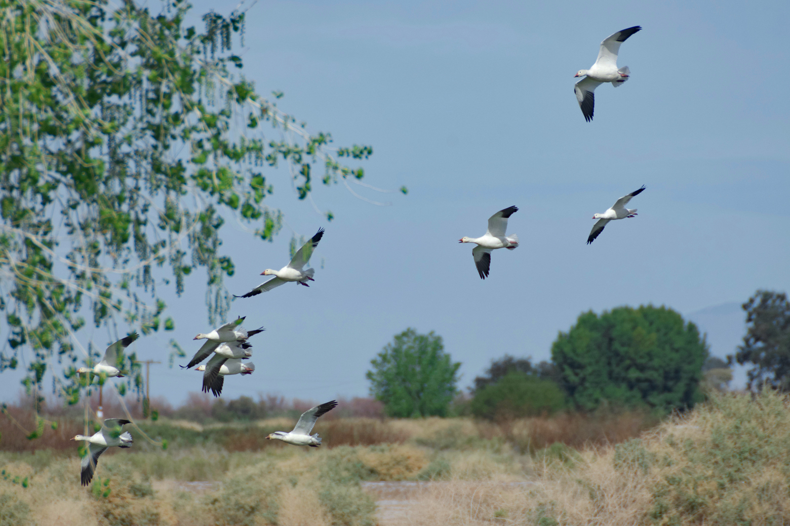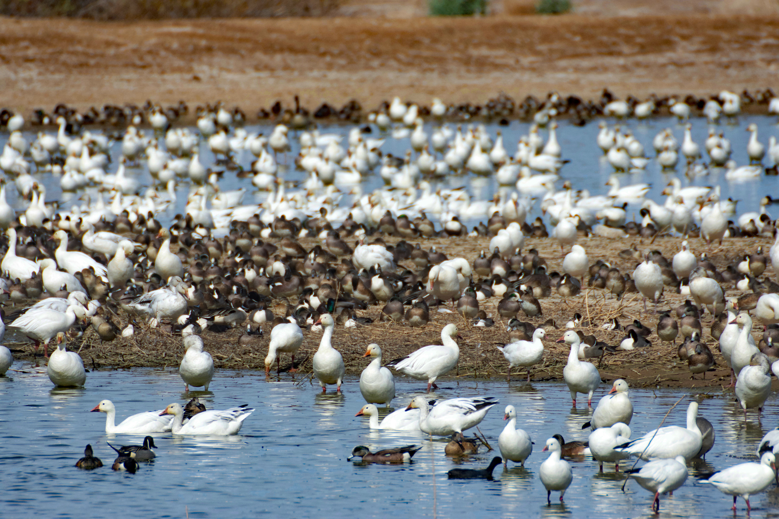 We ended up spending a total of six nights here. On the first day we took the Goose Loop Auto Tour of the refuge. It’s a three-mile drive along the edge of ponds, wetlands, and agricultural fields. We stopped at the nature trail and walked the one-mile loop through a restored riparian forest. We saw snow geese, northern pintails, American wigeons, Canada and cackling geese, an American robin, black-tailed gnatcatcher, and many more birds.