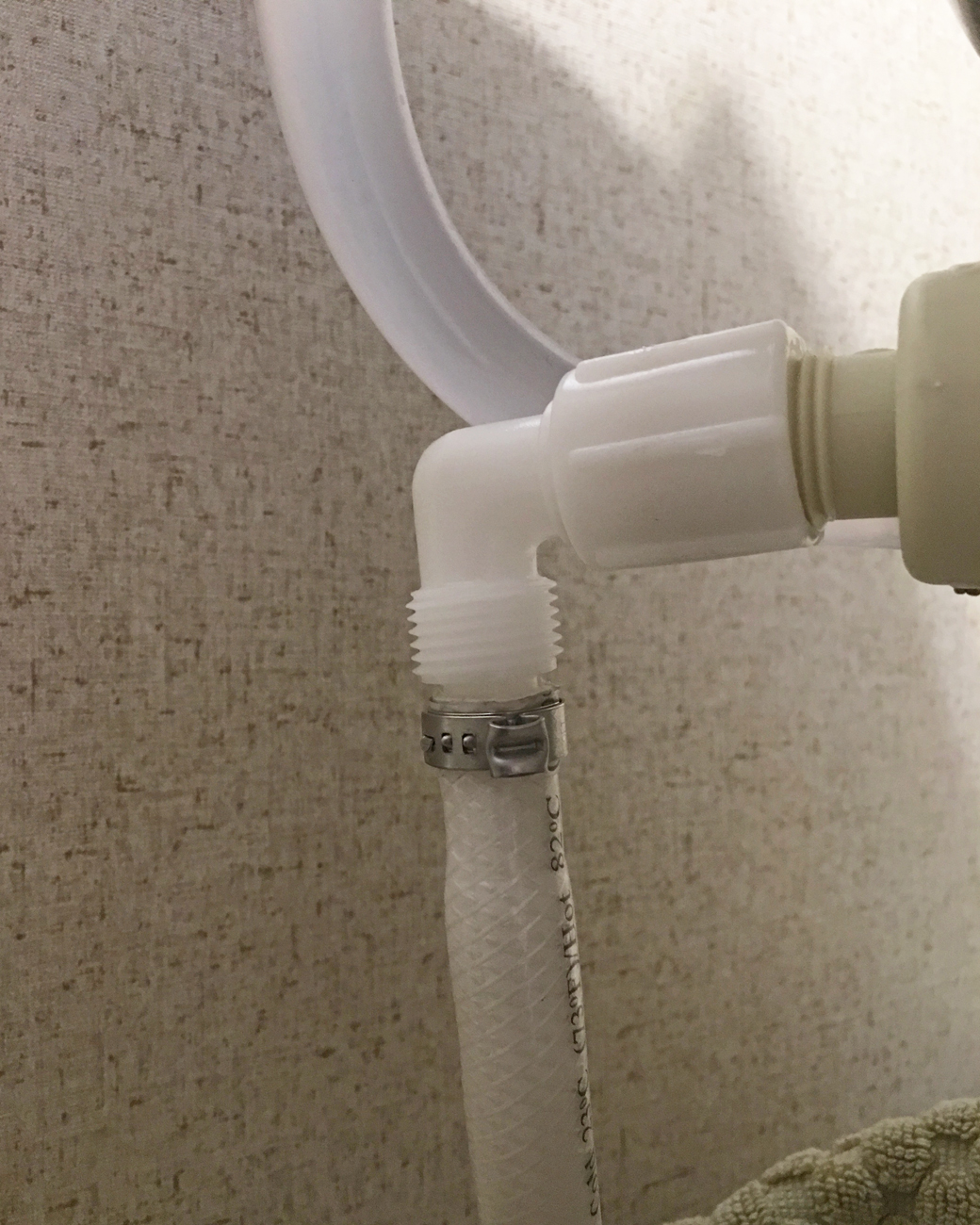 Sometimes the hose popped off under the pressure of the city water connection. Other times, it popped off under the pressure from the hot water heater, which is located just behind the toilet. For a time, I would cringe in fear after switching on the hot water heater, and any unexpected sound would make me jump.